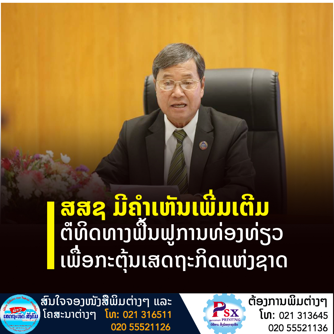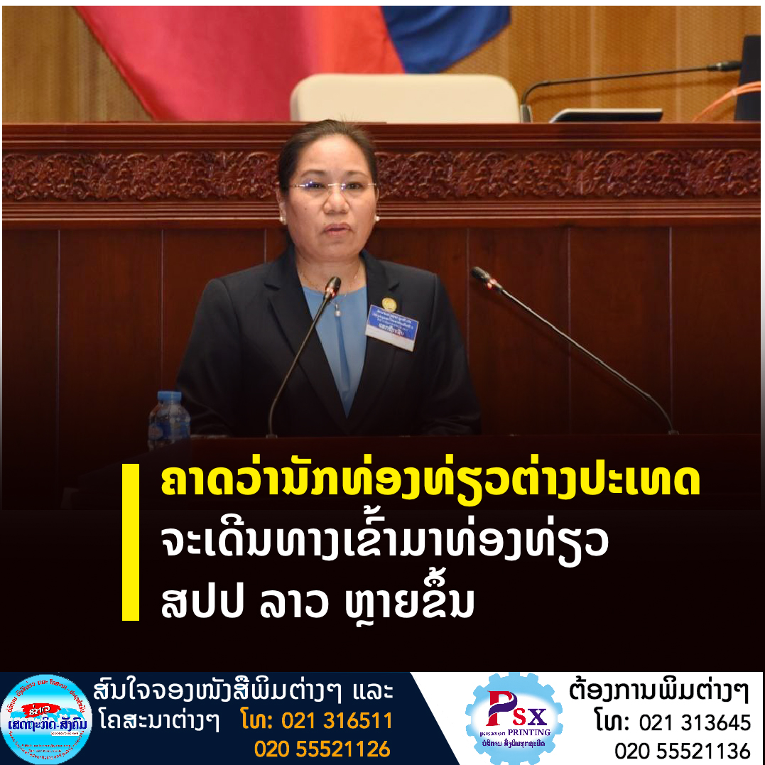 ທ່ານ ນາງ ສວນສະຫວັນ ວິຍະເກດ ລັດຖະມົນຕີກະຊວງຖະແຫຼງຂ່າວ, ວັດທະນະທໍາ ແລະ ທ່ອງທ່ຽວ (ຖວທ) ໄດ້ຂຶ້ນລາຍງານການຈັດຕັ້ງປະຕິບັດແຜນການທ່ອງທ່ຽວສີຂຽວ ແລະ ການເປີດປະເທດ ຕໍ່ກອງປະຊຸມສະໄໝສາມັນເທື່ອທີ 3 ຂອງສະພາແຫ່ງຊາດຊຸດທີ IX ໃນຕອນບ່າຍຂອງວັນທີ 17 ມິຖຸນາ ນີ້,