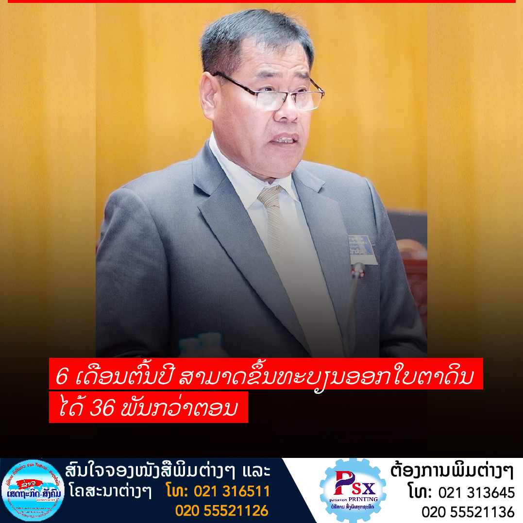 ການຈັດຕັ້ງປະຕິບັດການຂຶ້ນທະບຽນອອກໃບຕາດິນໄລຍະ 6 ເດືອນຕົ້ນປີນີ້ສາມາດຂຶ້ນທະບຽນອອກໃບຕາດິນໄດ້ພຽງ 36.165 ຕອນ ຫຼືເທົ່າກັບ 12.06% ຂອງແຜນປີເມື່ອທຽບໃສ່ໂຕເລກແຜນການທີ່ສະພາແຫ່ງຊາດໄດ້ຮັບຮອງ 300.000 ຕອນ ໃນປີ 2022 ແມ່ນຍັງໄດ້ໜ້ອຍ ຊຶ່ງອາດແມ່ນຍ້ອນ 5 ເຫດຜົນ,