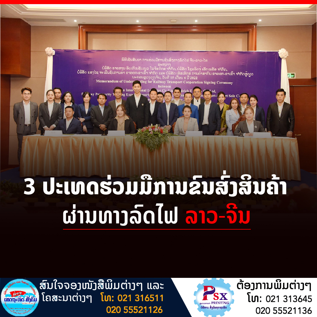 ໃນວັນທີ 15 ມິຖຸນາ ທີ່ຜ່ານມາ, ຢູ່ໂຮງແຮມແລນມາກໄດ້ຈັດພິທີເຊັນສັນຍາຮ່ວມມືການຂົນສົ່ງຜ່ານເສັ້ນທາງລົດໄຟ ຈີນ-ລາວ-ໄທ ລະຫວ່າງທ່ານ ກວັນວານ ປະທານບໍລິສັດ ຮາຍຫານ International logistics ຈໍາກັດ, ທ່ານນາງ ຖານັນດາ ອຳພັນທີຣະນົນ ປະທານ ບໍລິສັດ Soldrich Express ຈໍາກັດ,