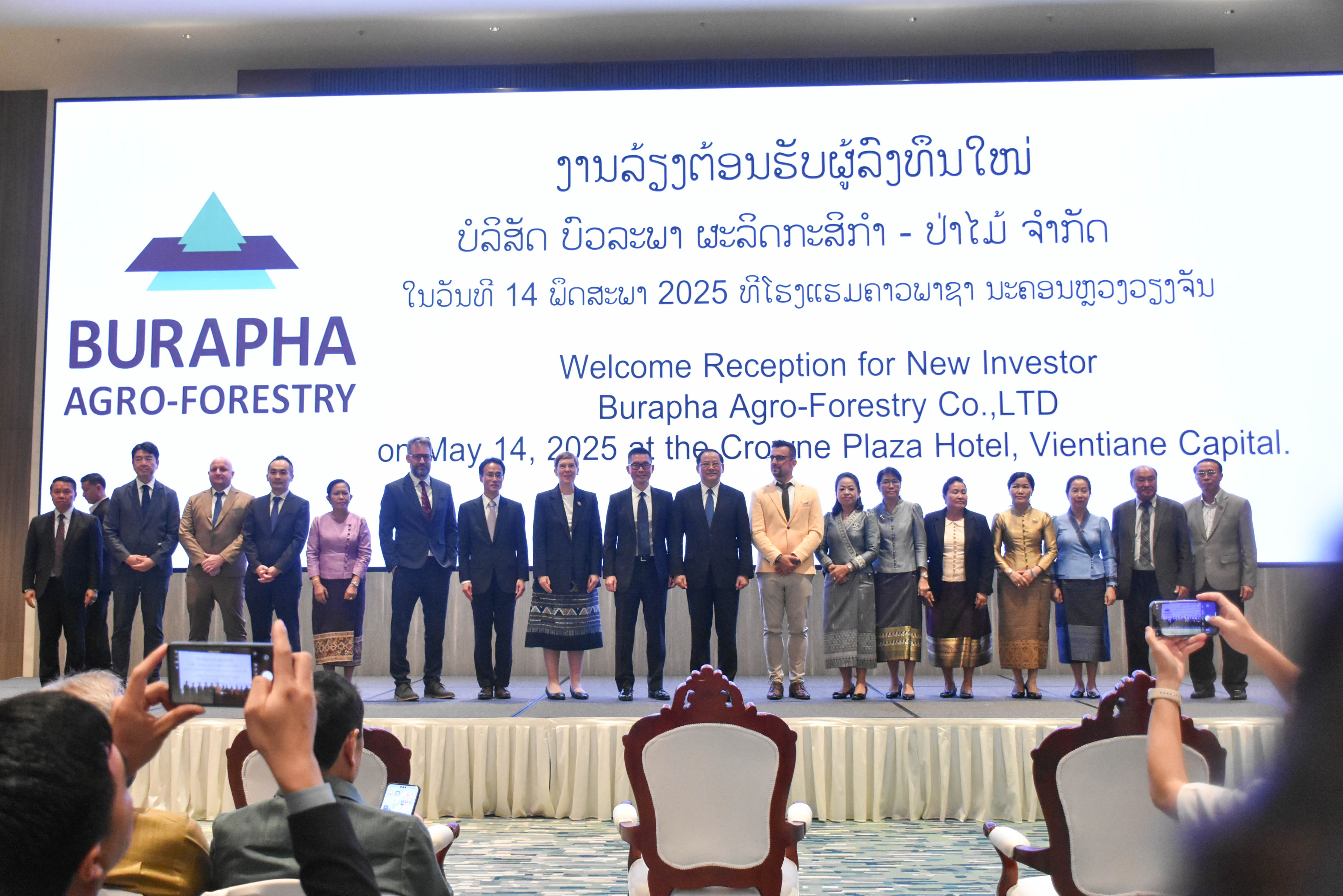 ໃນຄໍ່າຄືນວັນທີ 14 ພຶດສະພາ 2025 ທີ່ນະຄອນຫຼວງວຽງຈັນ, ບໍລິສັດ ບົວລະພາ ກະສິກຳ-ປ່າໄມ້ ຈຳກັດ ໄດ້ຈັດງານລ້ຽງຕ້ອນຮັບນັກລົງທຶນໃໝ່ ພ້ອມທັງສະເໜີວິໄສທັດໃນການລົງທຶນປູກໄມ້ອຸດສາຫະກຳ ໃນ ສປປ ລາວ,