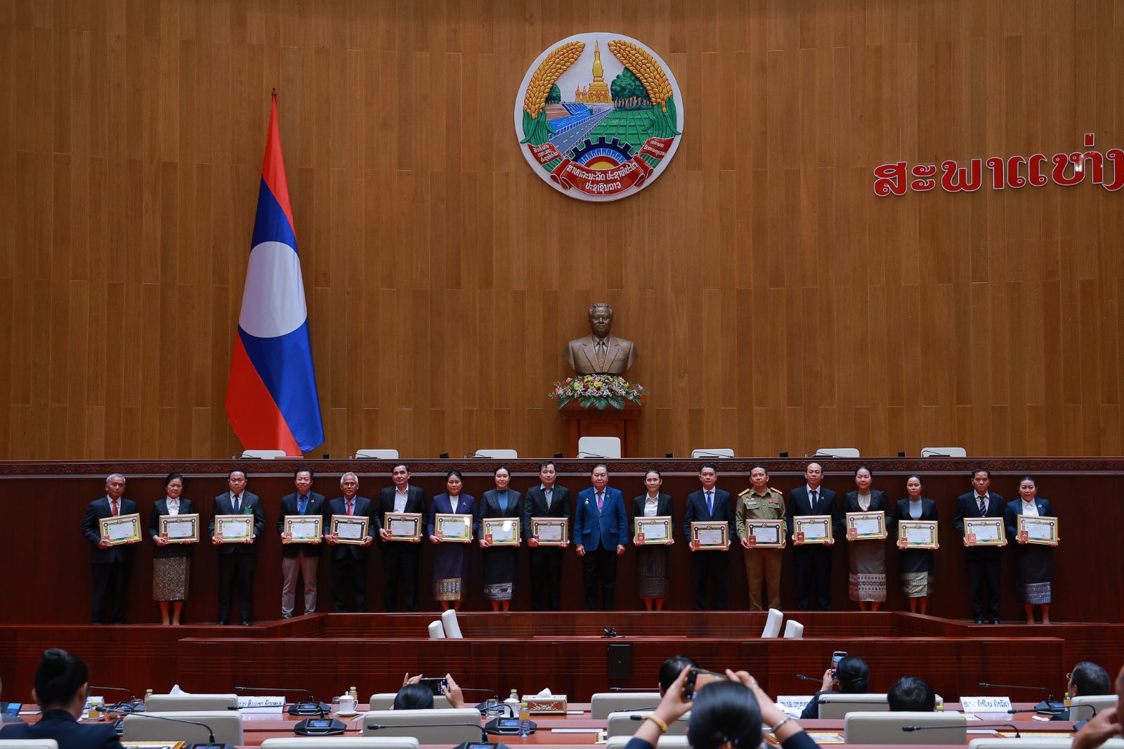 ທ່ານ ສອນໄຊ ສີພັນດອນ ນາຍົກລັດຖະມົນຕີ ແຫ່ງ ສປປ ລາວ ໃນນາມຕາງໜ້າການນໍາພັກ- ລັດ ແລະ ໃນນາມສ່ວນຕົວ ຂໍສົ່ງພອນໄຊອັນປະເສີດ, ຄວາມຮັກແພງ, ຄວາມເປັນຫ່ວງເປັນໃຍ ແລະ ຂໍຝາກຄວາມຢ້ຽມຢາມຖາມຂ່າວອັນອົບອຸ່ນມາຍັງລູກຫຼານ