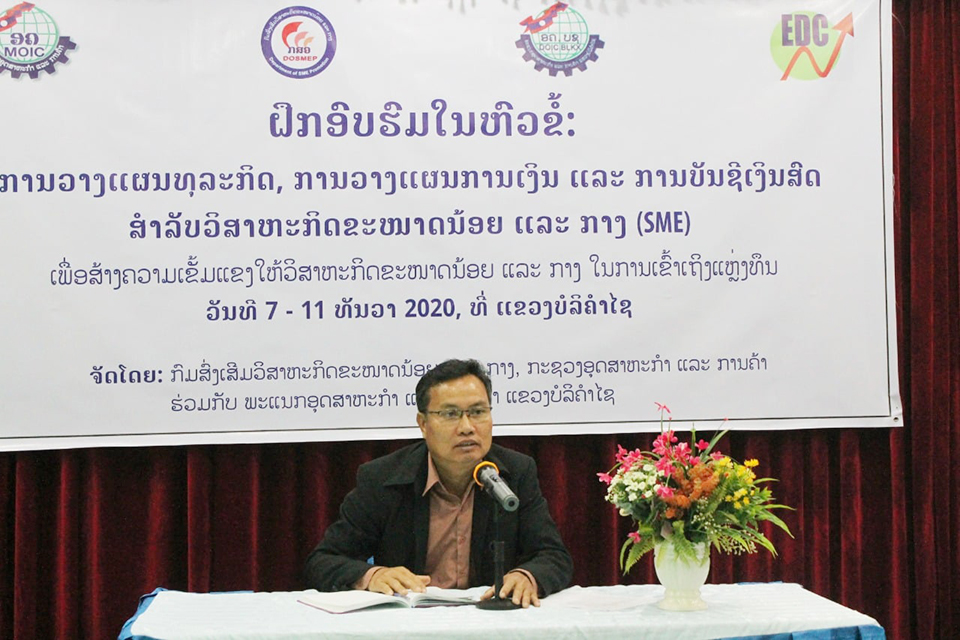 ພິທີເປີດຊຸດຝຶກອົບຮົມການວາງແຜນທຸລະກິດ, ການວາງແຜນການເງິນ ແລະການບັນຊີເງິນສົດໄດ້ຈັດຂຶ້ນໃນວັນທີ 8 ທັນວາ 20 20ຢູ່ຫ້ອງປະຊຸມໂຮງແຮມໂຊກບຸນມາໂດຍການເປັນປະທານຂອງ ທ່ານ ຄອນສະຫວັນ ສຸກຂະເສີມ ຮອງຫົວໜ້າພະແນກອຸດສາຫະກຳ ແລະ ການຄ້າແຂວງບໍລິຄຳໄຊ,