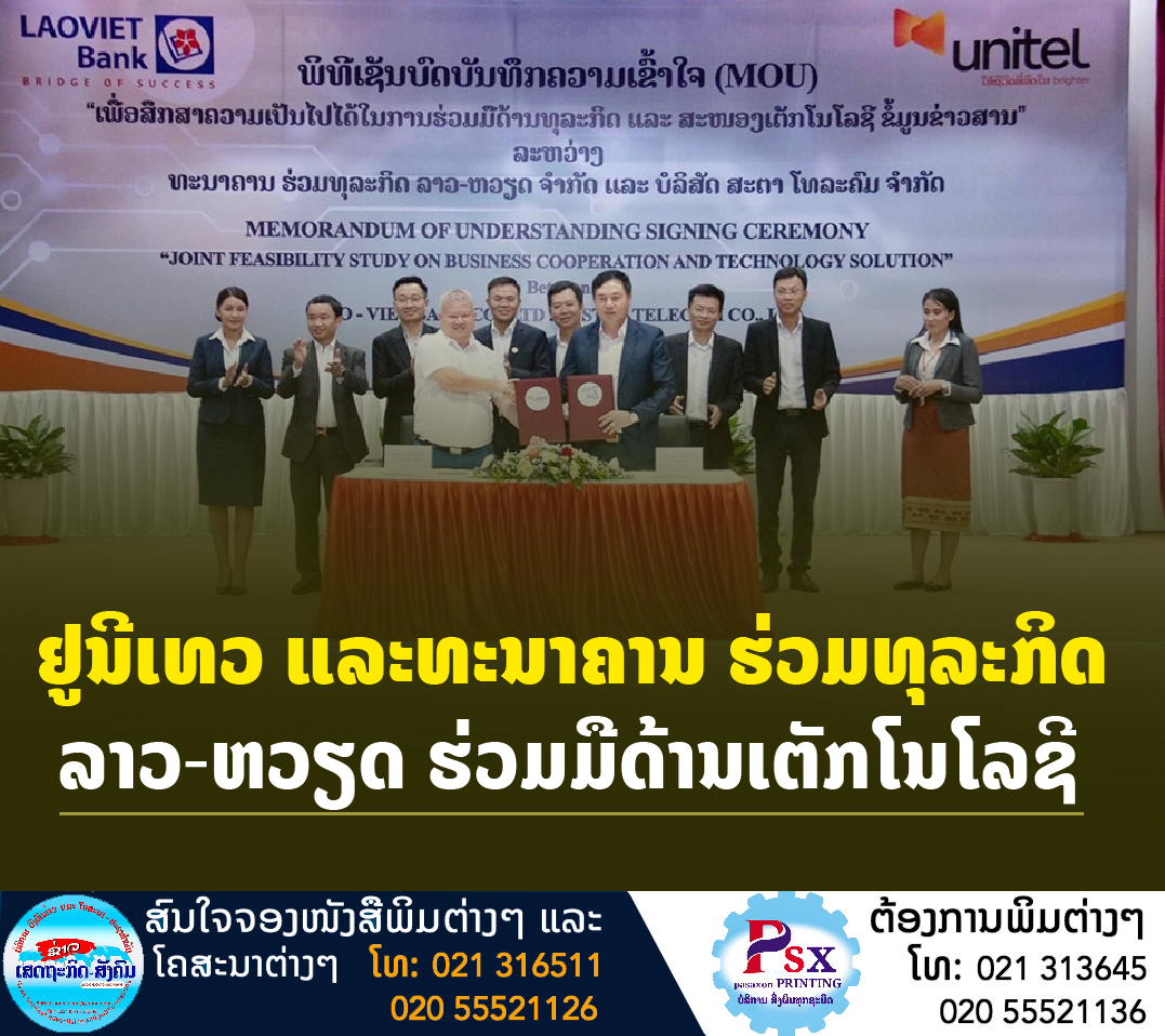 ນວັນທີ 6 ມິຖຸນາ 2022 ທີ່ສໍານັກງານໃຫຍ່ ບໍລິສັດ ສະຕາ ໂທລະຄົມ ໄດ້ມີພິທີເຊັນບົດບັນທຶກຄວາມເຂົ້າໃຈ (MOU) ລະຫວ່າງ ບໍລິສັດ ສະຕາ ໂທລະຄົມ ຈໍາກັດ (UNITEL) ແລະ ທະນາຄານ ຮ່ວມທຸລະກິດ ລາວ-ຫວຽດ ຈຳກັດ (LVB)
