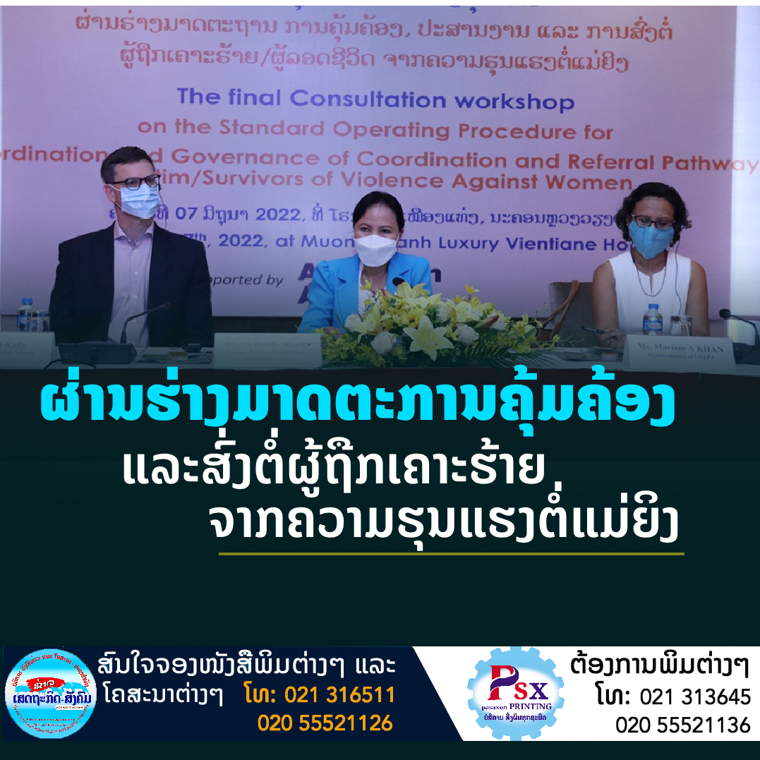 ຄະນະກຳມາທິການແຫ່ງຊາດ ເພື່ອຄວາມກ້າວໜ້າຂອງແມ່ຍິງ ແລະແມ່-ເດັກ ຮ່ວມກັບອົງການສະຫະປະຊາຊາດກອງທຶນສໍາລັບປະຊາກອນ (UNFPA) ຈັດກອງປະຊຸມປຶກສາຫາລືຄັ້ງສຸດທ້າຍກ່ຽວກັບການຜ່ານຮ່າງມາດຕະການຄຸ້ມຄ້ອງ,