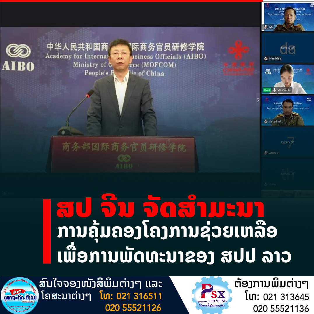 ສະຖາບັນເຈົ້າໜ້າທີ່ທຸລະກິດສາກົນ, ກະຊວງການຄ້າ ສາທາລະນະລັດ ປະຊາຊົນຈີນ(AIBO) ຈັດສຳມະນາກ່ຽວກັບ “ການຄຸ້ມຄອງໂຄງການຊ່ວຍເຫລືອ ເພື່ອການພັດທະນາຂອງ ສປປ ລາວ” ທາງອອນລາຍໃນລະຫວ່າງວັນທີ 8-22 ມິຖຸນາ 2022