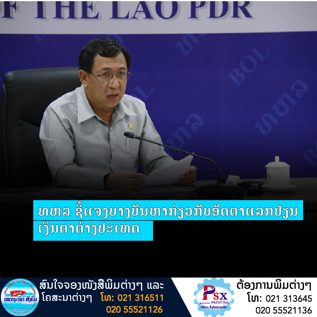 ສະພາບການຜັນຜວນຂອງອັດຕາແລກປ່ຽນໄດ້ສົ່ງຜົນຕໍ່ລາຄານໍ້າມັນ ແລະລາຄາສິນຄ້າປະເພດອື່ນໆທີ່ເໜັງຕີງສູງຂຶ້ນຕໍ່ບັນຫາດັງກ່າວ ທ່ານ ສອນໄຊ ສິດພະໄຊ ຜູ້ວ່າການທະນາຄານແຫ່ງ ສປປ ລາວ (ທຫລ) ໄດ້ຖະແຫຼງຂ່າວຕໍ່ສື່ມວນຊົນໃນວັນທີ 16 ພຶດສະພາຜ່ານມາທີ່ ທຫລ ວ່າ: