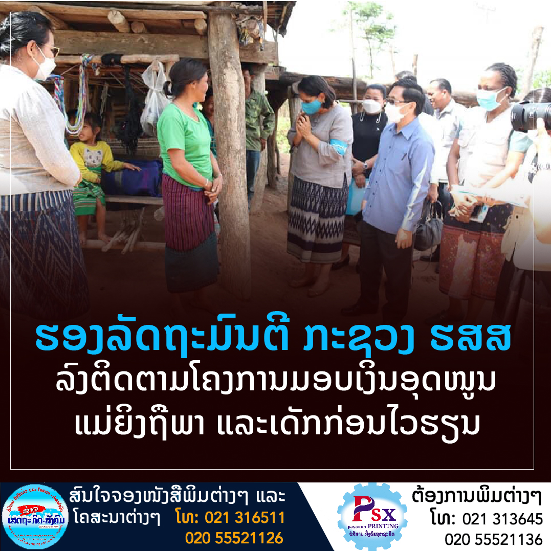 ໃນວັນທີ 17 ພຶດສະພາ ທີ່ຜ່ານມາກະຊວງແຮງງານ ແລະສະຫວັດດີການສັງຄົມ (ກະຊວງ ຮສສ), ສະຖານທູດອົດສະຕຣາລີ ແລະອົງການຢູນິເຊັບໄດ້ລົງຢ້ຽມຢາມຕິດຕາມໂຄງການໃຫ້ເງິນສົດອຸດໜູນແກ່ແມ່ຍິງຖືພາ ແລະ ເດັກກ່ອນໄວຮຽນ(Mother and Early Childhood Grant),
