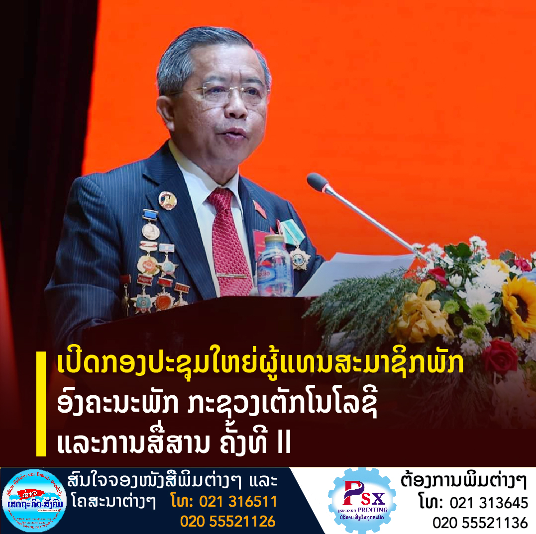 ກະຊວງເຕັກໂນໂລຊີ ແລະການສື່ສານ (ກຕສ) ໄດ້ໄຂກອງປະຊຸມໃຫຍ່ຜູ້ແທນສະມາຊິກພັກ ຄັ້ງທີ II, ຂຶ້ນໃນວັນທີ 4 ເມສາ 2022 ທີ່ຫໍປະຊຸມແຫ່ງຊາດ (ນະຄອນຫຼວງວຽງຈັນ)