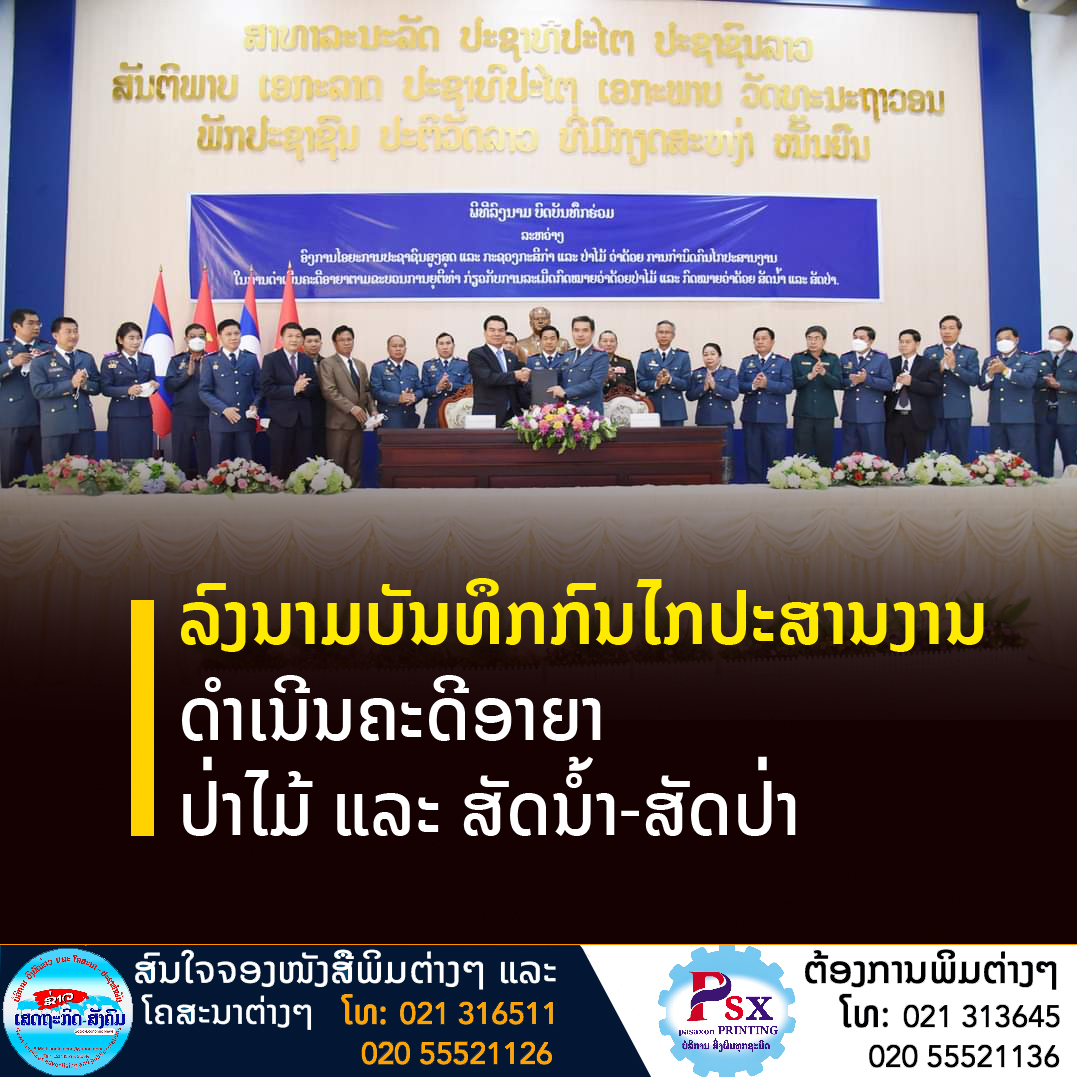ເມື່ອວັນທີ 5 ເມສາ 2022 ທີ່ຫ້ອງປະຊຸມອົງການໄອຍະການປະຊາຊົນສູງສຸດ, ໄດ້ຈັດພິທີລົງນາມບົດບັນທຶກການກຳນົດກົນໄກປະສານງານໃນການດຳເນີນຄະດີອາຍາ ກ່ຽວກັບປ່າໄມ້ ແລະ ສັດນໍ້າ-ສັດປ່າ, ລະຫວ່າງອົງການໄອຍະການປະຊາຊົນສູງສຸດ ແລະກະຊວງກະສິກຳ ແລະປ່າໄມ້.