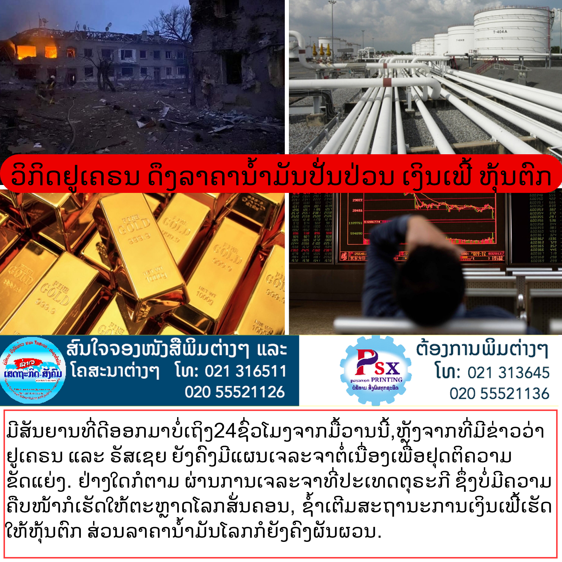 ມີລາຍງານວ່າລາຄານໍ້າມັນເຊື້ອໄຟປັບຕົວຫຼຸດລົງ 13%, ຫຼັງຈາກຣັສເຊຍ ແລະຢູເຄຣນ ຍັງຄົງມີແຜນເຈລະຈາຕໍ່ເນື່ອງເພື່ອຢຸດຕິຄວາມຂັດແຍ່ງ,
