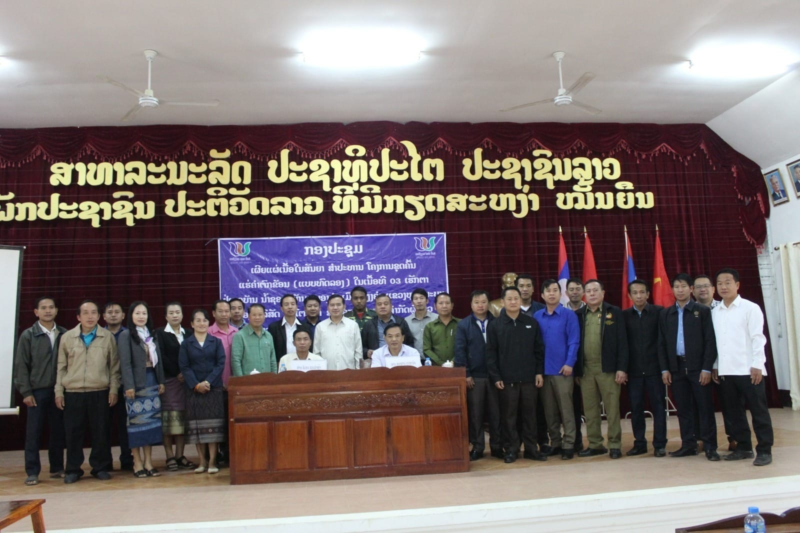 ອາທິດຜ່ານມານີ້ຢູ່ສະໂມສອນຂອງເມືອງວຽງຄໍາ ແຂວງຫຼວງພະບາງໄດ້ເປີດກອງປະຊຸມເຜີຍແຜ່ເນື້ອໃນສັນຍາສໍາປະທານໂຄງການຂຸດຄົ້ນແຮ່ຄໍາຕົກຂ້ອນແບບທົດລອງ ຢູ່ເມືອງວຽງຄໍາ ໂດຍເປັນປະທານຮ່ວມຂອງ ທ່ານ ສີວອນ ສອນຄໍາຫຼ້າ