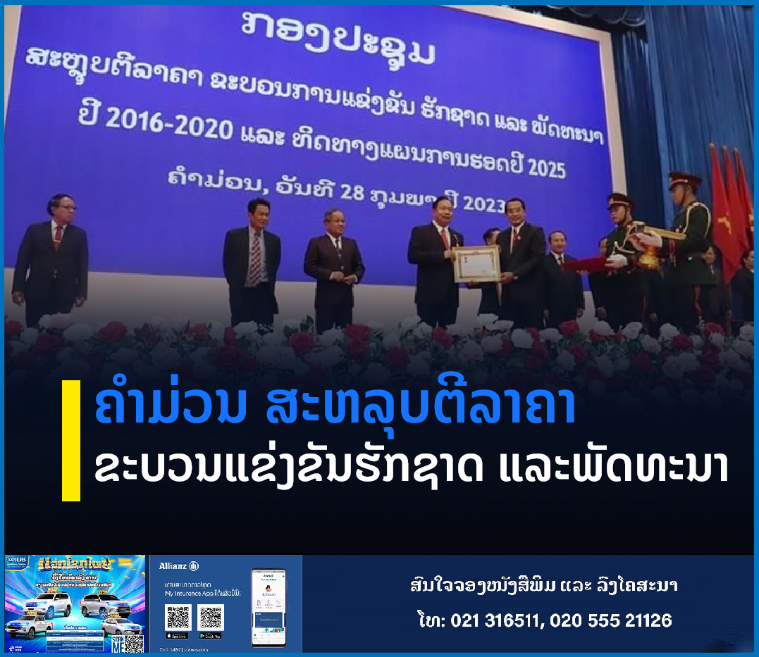 ວັນທີ 28 ກຸມພາ 2023 ຜ່ານມາ, ແຂວງຄໍາມ່ວນ ຈັດກອງປະຊຸມສະຫລຸບຕີລາຄາຄືນຂະບວນການແຂ່ງຂັນຮັກຊາດ ແລະ ພັດທະນາ ໄລຍະ 5 ປີຜ່ານມາ