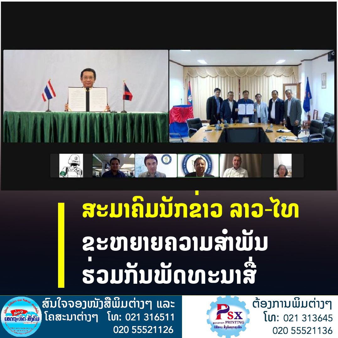 ສະມາຄົມນັກຂ່າວ ແຫ່ງສາທາລະນະລັດ ປະຊາທິປະໄຕ ປະຊາຊົນລາວ ແລະ ສະມາຄົມນັກຂ່າວ ນັກໜັງສືພິມແຫ່ງປະເທດໄທ ໄດ້ເພີ່ມການພົວພັນ ແລະຮ່ວມມືກັນໃນຫຼາຍດ້ານ ຊຶ່ງຜົນສືບເນື່ອງມາຈາກກອງປະຊຸມທະວິພາຄີລະຫວ່າງ 2 ສະມາຄົມດັ່ງກ່າວ ເມື່ອກາງເດືອນພະຈິກ 2021 ຜ່ານມາ;