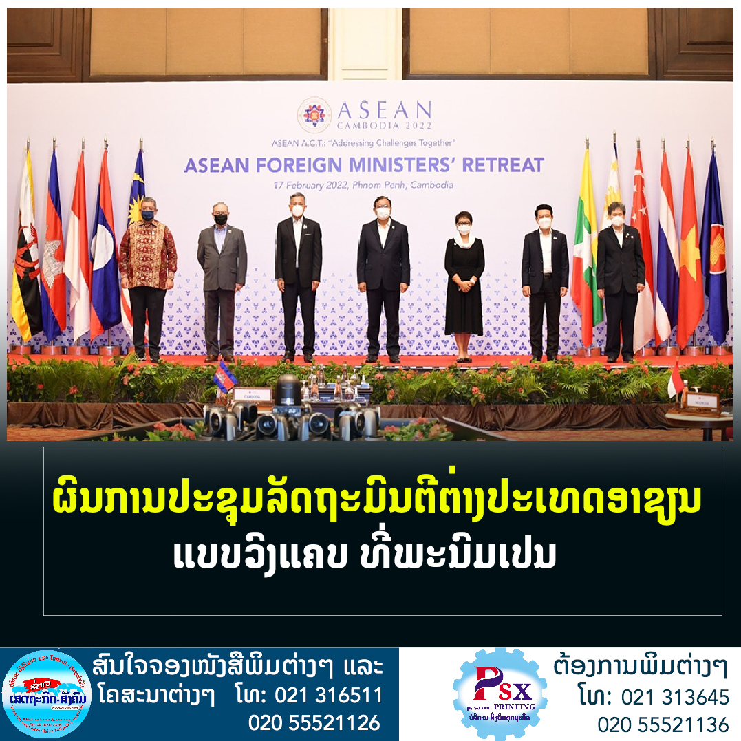 ກອງປະຊຸມລັດຖະມົນຕີຕ່າງປະເທດອາຊຽນ ແບບວົງແຄບ, ຊຶ່ງເປັນກອງປະຊຸມທຳອິດໃນລະດັບລັດຖະມົນຕີການຕ່າງປະເທດ ພາຍໃຕ້ການເປັນປະທານອາຊຽນຂອງ ກໍາປູເຈຍ ໃນປີ 2022 ຊຶ່ງຈັດຂຶ້ນໃນຮູບແບບປະສົມ, ໂດຍການເຂົ້າຮ່ວມແບບເຊິ່ງໜ້າທີ່ພະນົມເປນ,