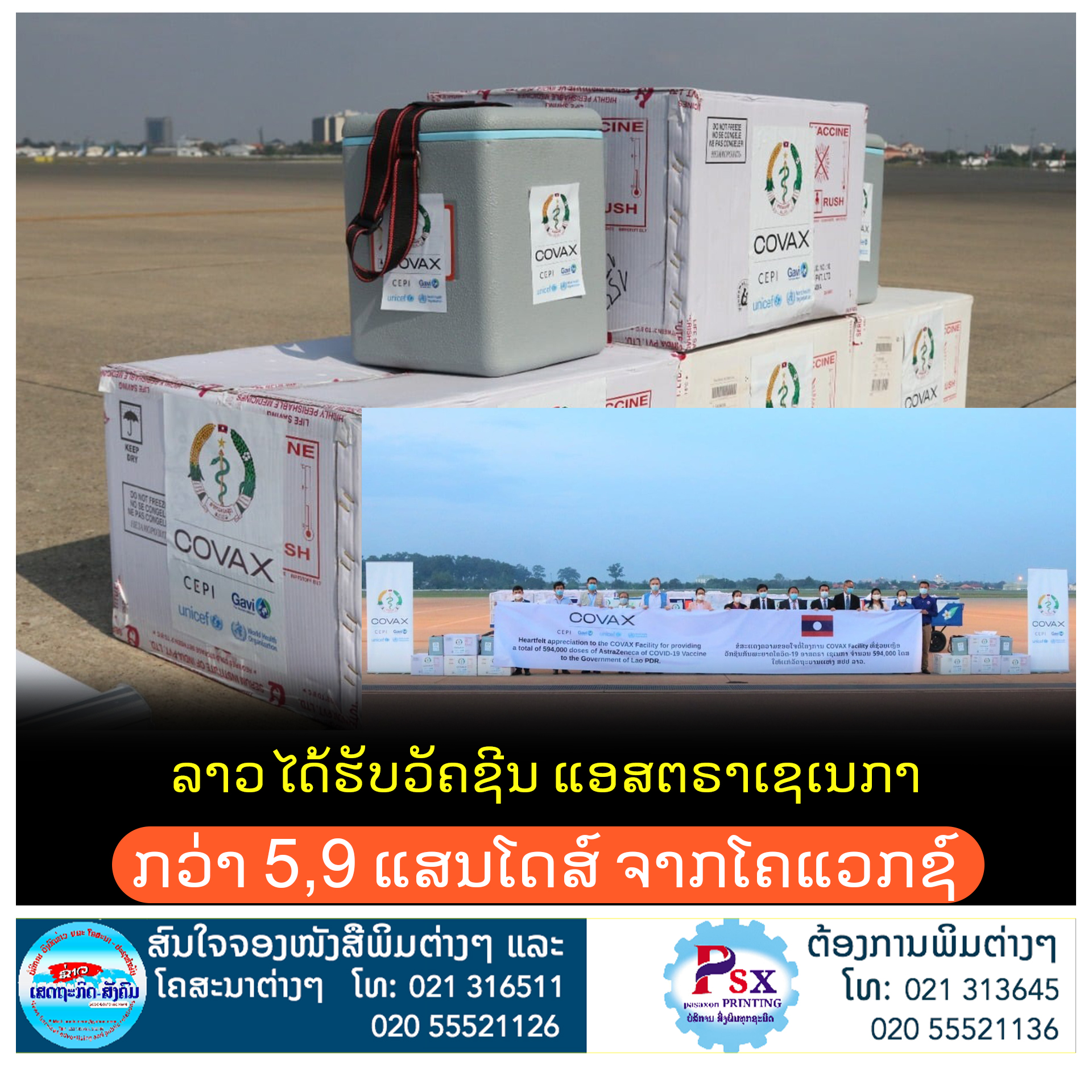 ສປປ ລາວ ໄດ້ຮັບວັຄຊີນປ້ອງກັນພະຍາດໂຄວິດ-19 ຊະນິດ ແອສຣາເຊເນກາ (AstraZeneca/Oxford) ຈຳນວນ 594.000 ໂດສ໌ ຈາກໂຄງການ COVAX Facility ຊຶ່ງເປັນການຮ່ວມມືລະຫວ່າງ ອົງການພັນທະມິດຮ່ວມມືດ້ານນະວັດຕະກໍາ ເພື່ອຮັບມືກັບພະຍາດລະບາດ (CEPI), ອົງການກາວີ (Gavi) ແລະ ອົງການອະນາໄມໂລກ (WHO) ໂດຍມີ ອົງການຢູນິເຊຟ ເປັນຄູ່ຮ່ວມງານສຳຄັນໃນການຈັດສົ່ງ.
