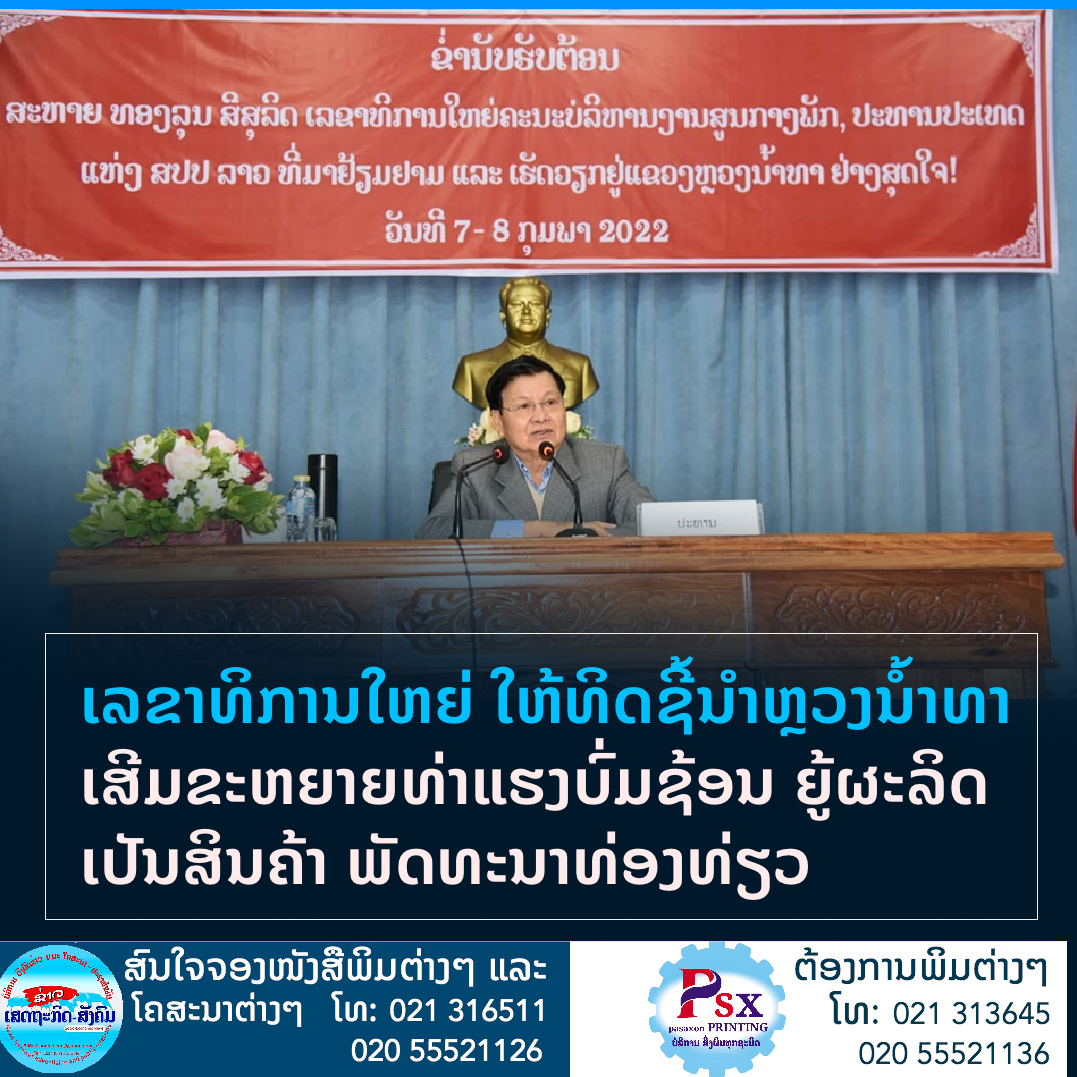 ສະຫາຍ ທອງລຸນ ສີສຸລິດ ເລຂາທິການໃຫຍ່ຄະນະບໍລິຫານງານສູນກາງພັກ ປະທານປະເທດ ແຫ່ງ ສປປ ລາວ, ໃຫ້ທິດຊີ້ນຳຫຼວງນໍ້າທາ ຈົ່ງເສີມຂະຫຍາຍທ່າແຮງບົ່ມຊ້ອນຂອງພູມປະເທດໃນເຂດແຂວງ; ບໍ່ວ່າຈະເປັນແຫຼ່ງນໍ້າ, ສະພາບອາກາດ, ທິວທັດທຳມະຊາດ ແລະ ອື່ນ