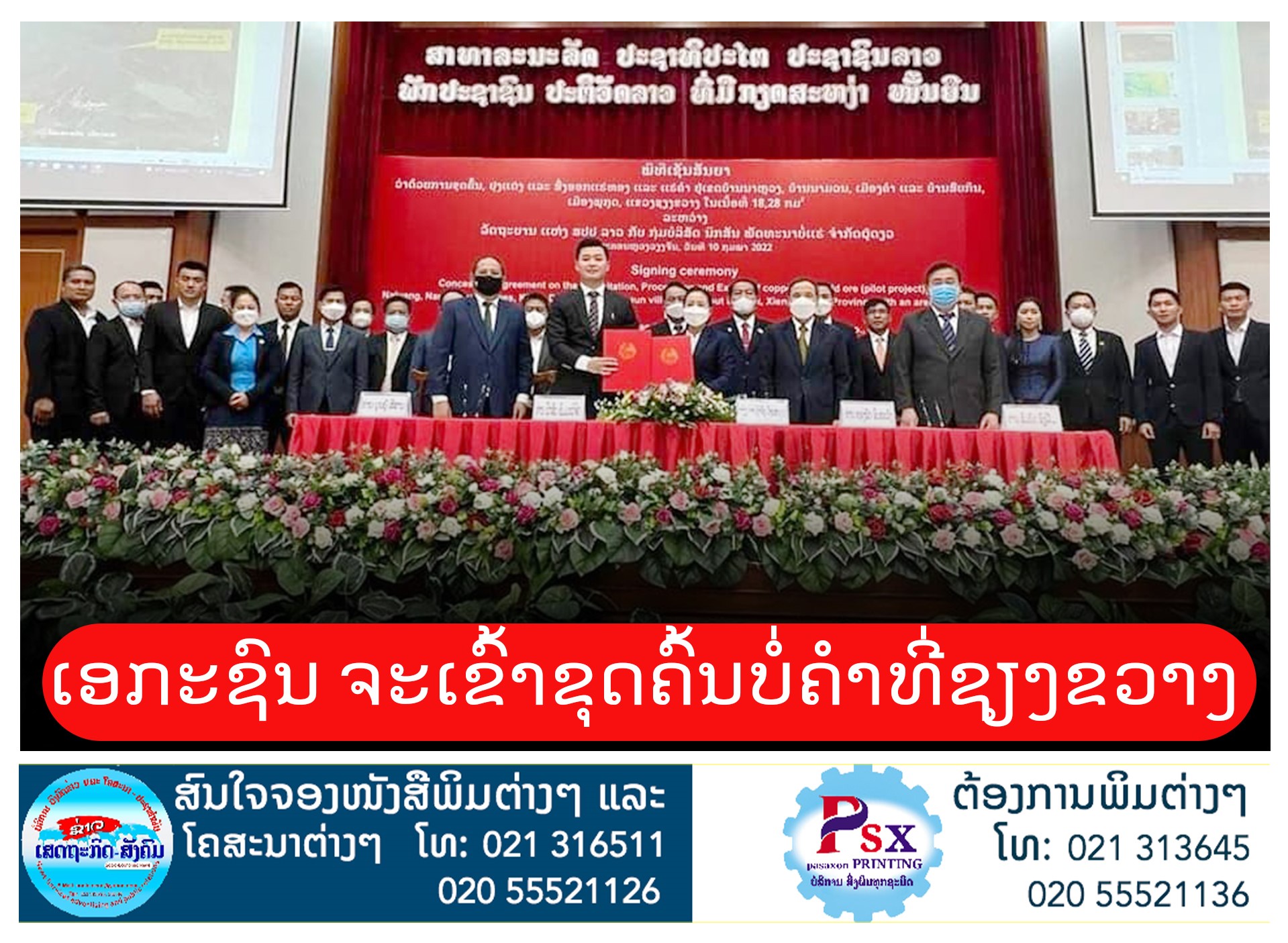 ລັດຖະບານແຫ່ງ ສປປ ລາວ, ອະນຸຍາດໃຫ້ບໍລິສັດ ນິກສັນ ພັດທະນາບໍ່ແຮ່ ຈໍາກັດຜູ້ດຽວ, ຮັບສຳປະທານຂຸດຄົ້ນ, ປຸງແຕ່ງ, ສົ່ງອອກແຮ່ທອງ ແລະ ແຮ່ຄໍາ ໃນເນື້ອທີ່ 18,28 ຕາກິໂລແມັດ, ໃນອາຍຸສັນຍາ 20 ປີ.