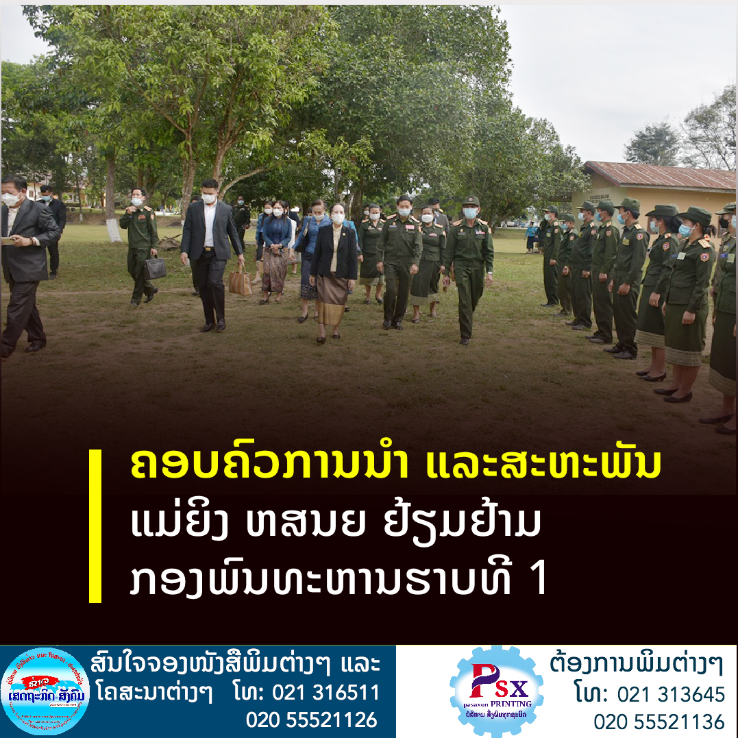 ນຳພາຄະນະຄອບຄົວການນຳ ແລະ ສະຫະພັນແມ່ຍິງ ຫ້ອງວ່າການສຳນັກງານນາຍົກລັດຖະ ມົນຕີ (ຫສນຍ) ເຄື່ອນໄຫວຢ້ຽມຢາມ ແລະ ນຳເຄື່ອງອຸປະໂພກ-ບໍລິໂພກໄປມອບໃຫ້ກອງພົນທະ ຫານຮາບທີ 1 ທີ່ເມືອງວັງວຽງ ແຂວງວຽງຈັນ,