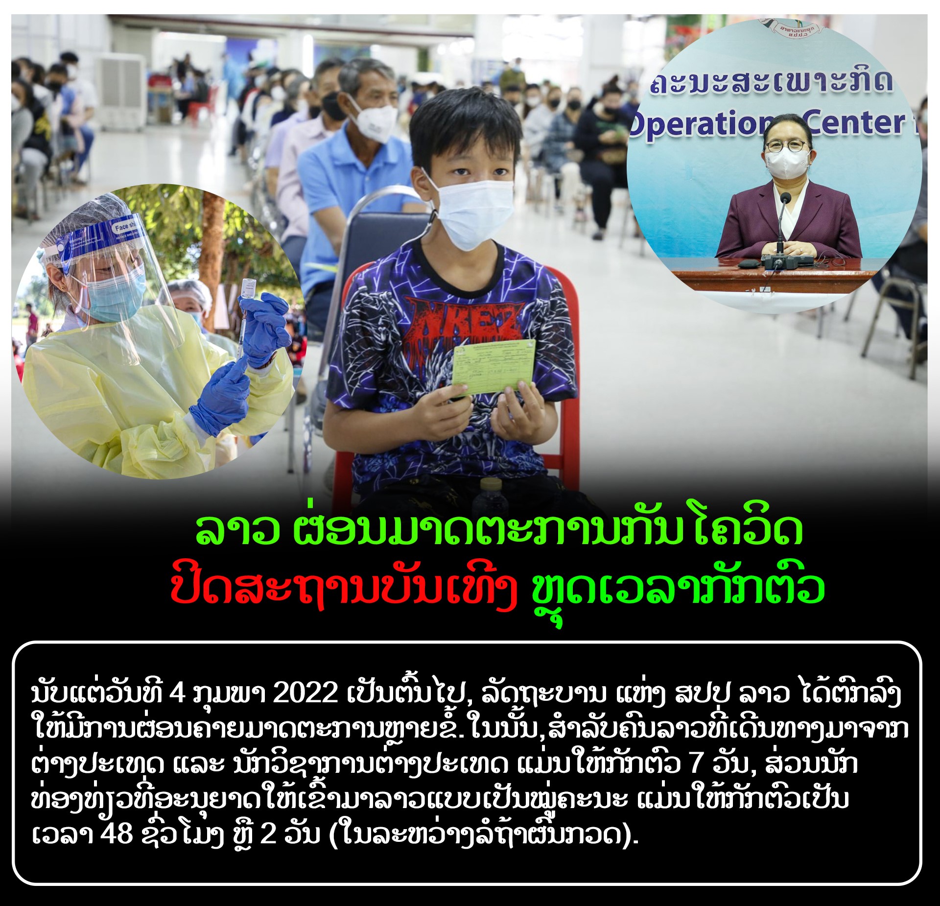 ໂດຍທ່ານນາງ ທິບພະກອນ ຈັນທະວົງສາ, ຮອງລັດຖະມົນຕີ ຮອງຫົວໜ້າຫ້ອງວ່າການສຳນັກງານນາຍົກລັດຖະມົນຕີ ຮອງຫົວໜ້າຄະນະສະເພາະກິດ ໄດ້ຖະແຫຼງ ເມື່ອວັນ 3 ກຸມພາ 2022 ວ່າ