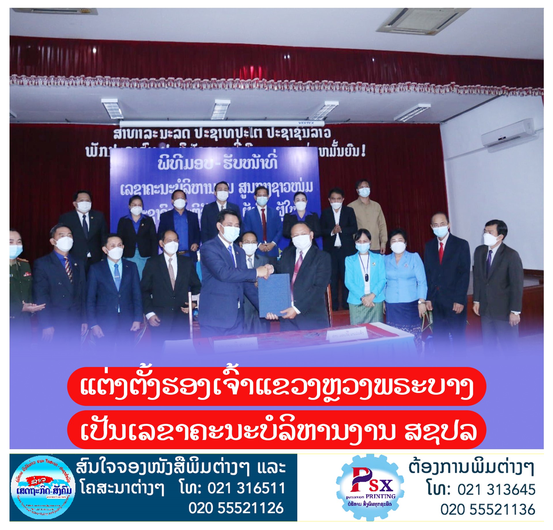 ສະຫາຍ ມອນໄຊ ລາວມົວຊົ່ງ ກຳມະການສຳຮອງສູນກາງພັກ ຮອງເຈົ້າແຂວງຫຼວງພຣະບາງ, ໄດ້ຮັບການແຕ່ງຕັ້ງເປັນເລຂາຄະນະບໍລິຫານງານພັກ ເລຂາຄະນະບໍລິຫານງານ ສຊປລ ຜູ້ໃໝ່; ຂະນະທີ່ ສະຫາຍ ອາລຸນໄຊ ສູນນະລາດ ເລຂາຄະນະບໍລິຫານງານ ສຊປລ ຜູ້ເກົ່າ