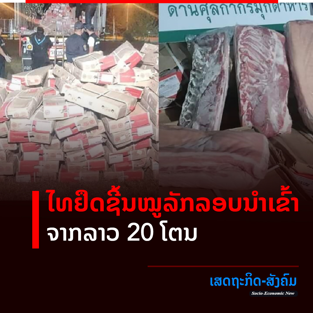 ໄທຢຶດຊີ້ນໝູລັກລອບນຳເຂົ້າຈາກລາວ 20 ໂຕນ