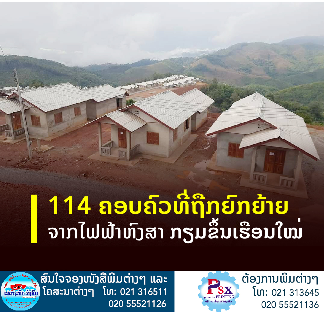 114 ຄອບຄົວທີ່ຖືກຍົກຍ້າຍຈາກໄຟຟ້າຫົງສາ ກຽມຂຶ້ນເຮືອນໃໝ່