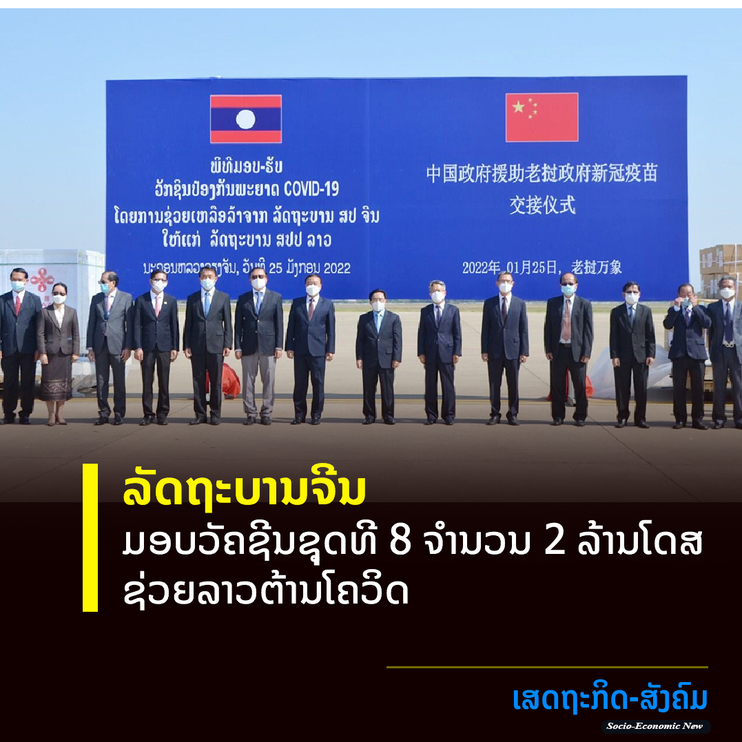 ວັຊີນປ້ອງກັນໂຄວິດ-19 ຈໍານວນ 2 ລ້ານໂດສ ຈາກ ສປ ຈີນ ໄດ້ມາຮອດ ສປປ ລາວ ແລ້ວໃນຕອນເຊົ້າຂອງວັນທີ 25 ມັງກອນ 2022 ຊຶ່ງນັບເປັນຄັ້ງທີ ທີ່ລັດຖະບານ ສປ ຈີນ ໄດ້ໃຫ້ການຊ່ວຍເຫຼືອວັຊີນປ້ອງກັນໂຄວິດ-19 ແກ່ ສປປ ລາວ ແລະ ເປັນຄັ້ງທໍາອິດຂອງປີ 2022.