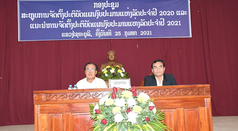 ກອງປະຊຸມສະຫຼຸບການຈັດຕັ້ງປະຕິບັດແຜນງົບປະມານແຫ່ງລັດປະຈໍາປີ 2020 ແລະເຜິຍແຜ່ແນະນໍາການຈັດຕັ້ງປະຕິບັດແຜນງົບປະມານແຫ່ງລັດປະຈໍາປີ 2021 ໄດ້ຈັດຂຶ້ນເມື່ອບໍ່ດົນມານີ້ທີ່ຫ້ອງປະຊຸມພະແນກກະສິກໍາ ແລະປ່າໄມ້ ແຂວງໄຊຍະບູລີ,