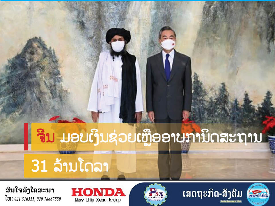 ລັດຖະບານ ສປ ຈີນ ໄດ້ມອບເຄື່່ອງຊ່ວຍເຫຼືອໃຫ້ກັບອາບການິດສະຖານຄິດເປັນມູນຄ່າ 200 ລ້ານ ຢວນ(ປະມານ 31 ລ້ານໂດລາສະຫະລັດ) ຊຶ່ງປະກອບໄປດ້ວຍອາຫານທະເລ ແລະວັກແຊງຕ້ານໂຄວິດ-19.