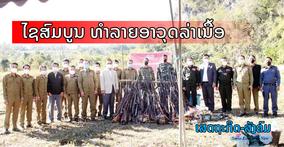 ວັນທີ 6 ມັງກອນຜ່ານມາກອງບັນ ຊາການ ປກສ ແຂວງໄຊສົມບູນ ໄດ້ຈັດພິທີທຳລາຍອາວຸດລ່າເນື້ອ ແລະອຸປະກອນທີ່ຜິດກົດໝາຍ ປະຈຳປີ 2021 ຂຶ້ນ ເຂົ້າຮ່ວມເປັນປະທານຂອງທ່ານ ພົຕ ຄຳລຽງ ອຸທະໄກສອນ, ເຈົ້າແຂວງ, ປະທານປ້ອງກັນຊາດ-ປ້ອງກັນຄວາມສະຫງົບ ແຂວງໄຊສົມບູນ,