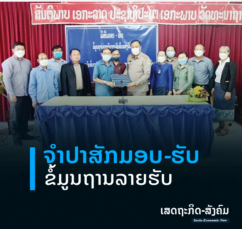 ວັນທີ 6 ມັງກອນຜ່ານມາທີ່ ແຂວງຈຳປາສັກໄດ້ຈັດພິທີມອບ-ຮັບຂໍ້ມູນຖານລາຍຮັບລະຫວ່າງຂະແໜງຄຸ້ມຄອງຊັບສິນແຫ່ງລັດກັບສ່ວຍສາອາກອນປະຈໍາແຂວງ, ຕາງໜ້າມອບຂອງທ່ານ ຖາວອນ ສຸລາດທາທອນ ຮັກສາການຫົວໜ້າຂະແໜງຄຸ້ມຄອງຊັບສິນແຫ່ງລັດ