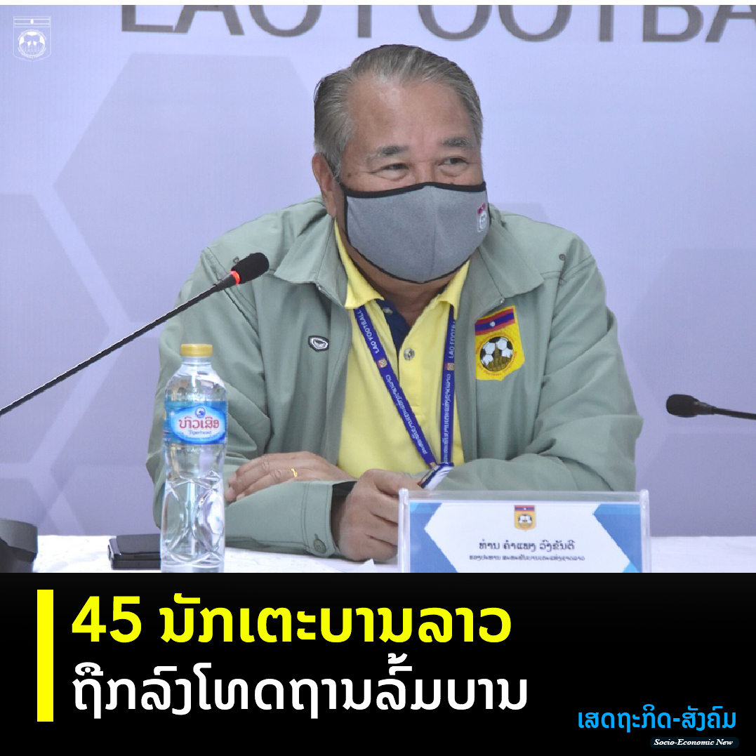 ນັກກີລາເຕະບານຊາຍທີມຊາດລາວ 45 ຄົນ ຖືກສະຫະພັນບານເຕະສາກົນ (FIFA) ລົງໂທດຫ້າມຫຍຸ້ງກ່ຽວກັບກີລາເຕະບານຕະຫຼອດຊີວິດເນື່ອງຈາກ FIFA ກວດສອບພົບວ່າມີສ່ວນພົວພັນກັບການສໍ້ໂກງຜົນການແຂ່ງຂັນ (ລົ້ມບານ)