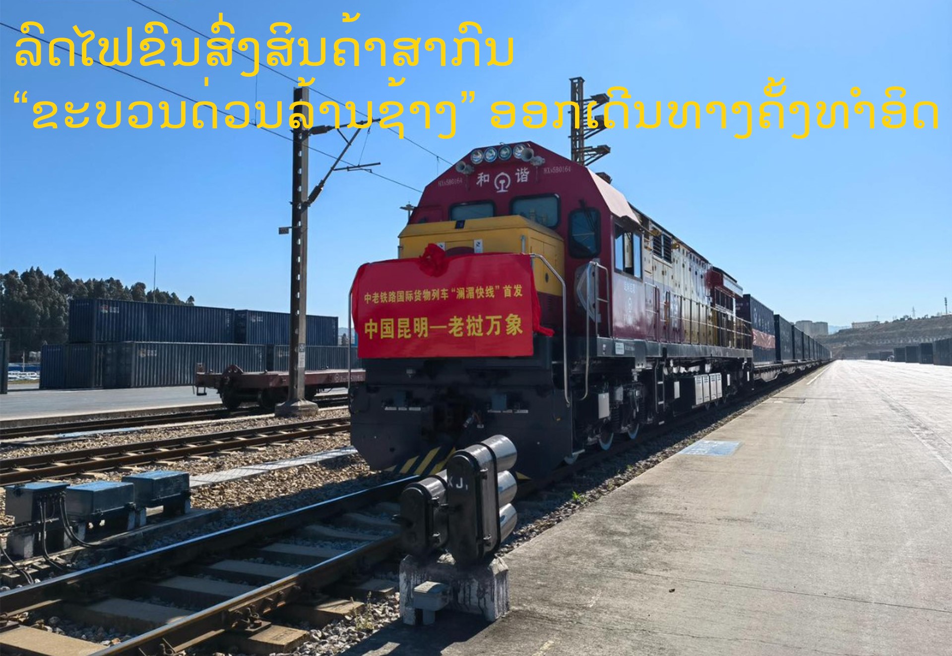 ລາຍງານຂ່າວຂອງ CRI ປະຈຳລາວ ໃຫ້ຮູ້ວ່າ ໃນເວລາ 10:30 ໂມງ ຂອງວັນທີ 10 ມັງກອນ 2022 (ຕາມເວລາວຽງຈັນ) ລົດໄຟ “ຂະບວນດ່ວນລ້ານຊ້າງ” ທີ່ເປັນຂະບວນລົດໄຟຂົນສົ່ງສິນຄ້າຂະບວນທຳອິດ ຊຶ່ງແລ່ນດ້ວຍຄວາມໄວ 120 ກິໂລແມັດຕໍ່ຊົ່ວໂມງ ໄດ້ອອກເດີນທາງຈາກນະຄອນຄຸນມິງ ປະເທດຈີນ ແລະ ຈະເດີນທາງມາເຖິງນະຄອນຫຼວງວຽງຈັນ ໃນວັນທີ 11 ມັງກອນນີ້.