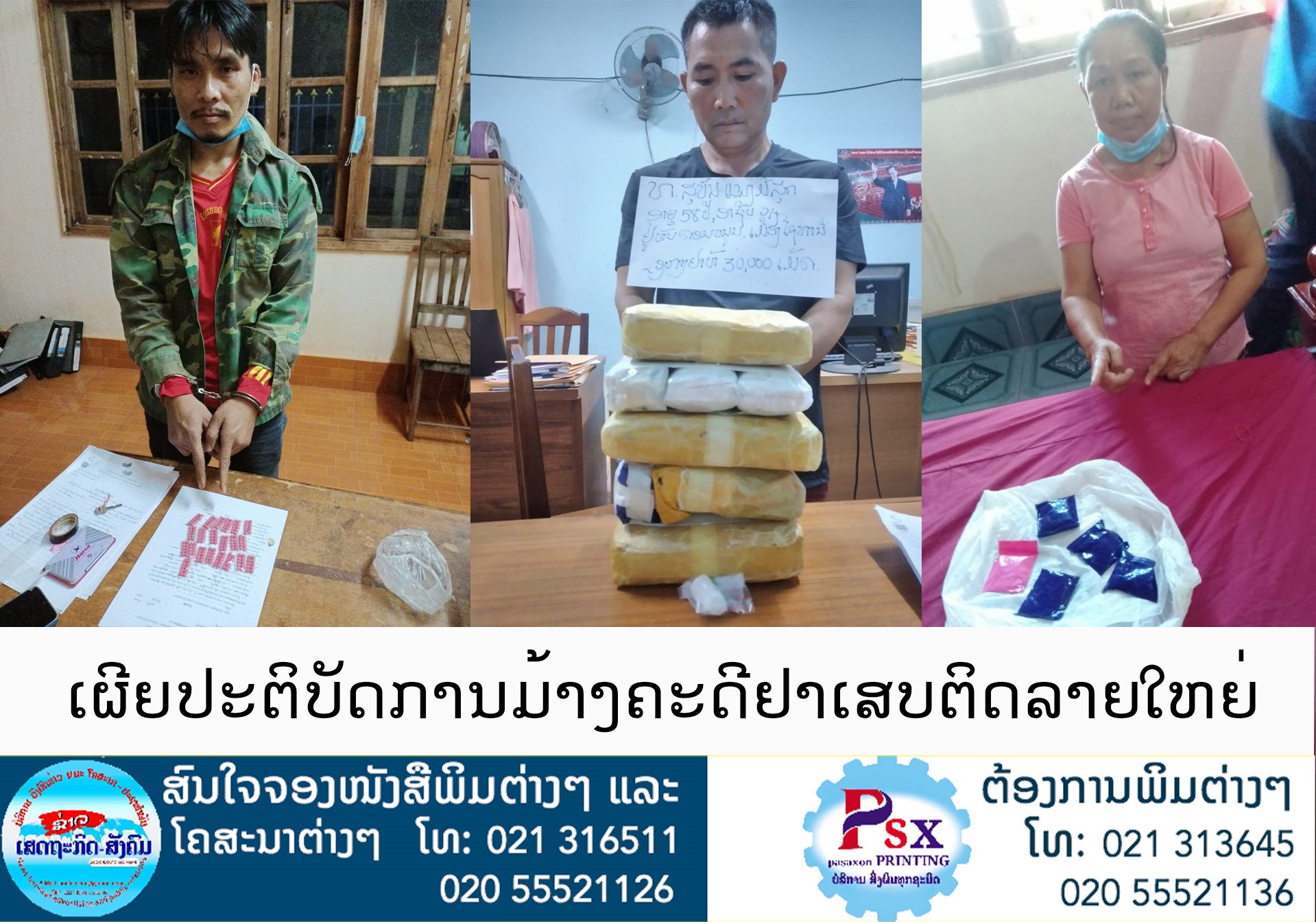 ປກສ ເມືອງໄຊທານີ ໄດ້ເປີດເຜີຍເມື່ອວັນທີ 5 ມັງກອນ 2022 ກ່ຽວກັບຄະດີທີ່ພົ້ນເດັ່ນທີ່ເກີດຂຶ້ນຢູ່ບ້ານດອນໜູນ ໃນວັນທີ 23 ທັນວາ 2021 ຜ່ານມາ ຊຶ່ງເຈົ້າໜ້າທີ່ສາມາດຈັບຜູ້ຖືກຫາໄດ້ 3 ຄົນ ພ້ອມຢຶດຂອງກາງຢາບ້າຫຼາຍກວ່າ 31 ພັນເມັດ ແລະ ຊັບສິນທີ່ກ່ຽວຂ້ອງຫຼາຍລາຍ.