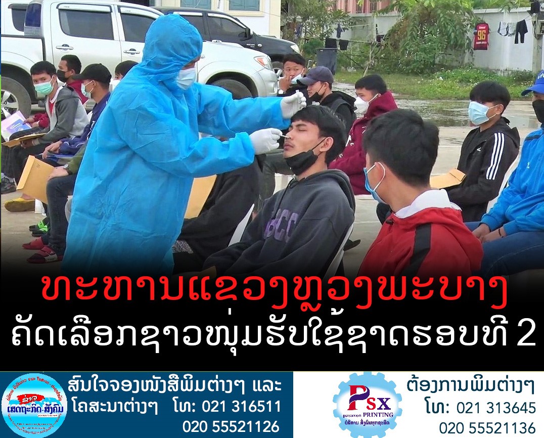 ພິທີຄັດເລືອກເອົາຊາວໜຸ່ມ ເຂົ້າຮັບໃຊ້ຊາດຖັນແຖວກອງທັບ ປະຊາຊົນລາວ ຮອບທີ 2 ປະຈໍາປີ 2021 ຂອງກອງບັນຊາການ ທະຫານແຂວງຫຼວງພະບາງ ໄດ້ ຈັດຂຶ້ນໃນລະຫວ່າງວັນທີ 3-4 ມັງກອນ 2022 ນີ້