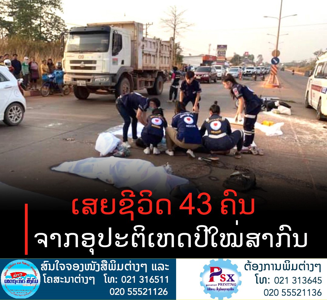 ໃນ 5 ວັນຂອງການສະເຫຼີມສະຫຼອງສົ່ງທ້າຍປີເກົ່າ ຕ້ອນຮັບປີໃໝ່ 2022 ທົ່ວປະເທດມີອຸບັດຕິເຫດເກີດ ຂຶ້ນທັງໝົດ 197 ຄັ້ງ, ມີຜູ້ໄດ້ຮັບບາດເຈັບ 297 ຄົນ, ເສຍຊີວິດຈາກອຸບັດຕິເຫດ 43 ຄົນ, ມີພາຫະນະເປ່ເພ 315 ຄັນ.