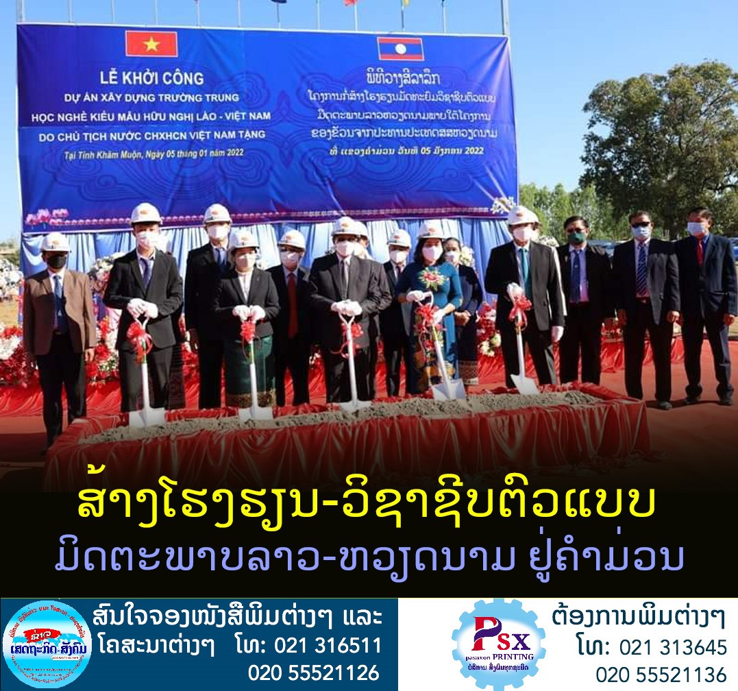 ວັນທີ 5 ມັງກອນ 2022 ທີ່ ໂຮງຮຽນ ມສ ສອງເໜືອງ ເມືອງໜອງບົກ ແຂວງຄຳມ່ວນ ໄດ້ວາງສີລາເລີກໂຄງການກໍ່ສ້າງໂຮງຮຽນມັດທະຍົມ- ວິຊາຊີບຕົວແບບມິດຕະພາບລາວ- ຫວຽດນາມ ເຂົ້າຮ່ວມມີທ່ານ ວັນໄຊ ພອງສະຫວັນ ເຈົ້າແຂວງຄຳມ່ວນ, ທ່ານ ປອ. ນາງ ສີສຸກ ວົງວິຈິດ ຮອງລັດຖະມົນຕີກະຊວງສຶກສາທິການ ແລະ ກີລາ, ມີປະທານສະພາປະຊາຊົນແຂວງຄຳມ່ວນ