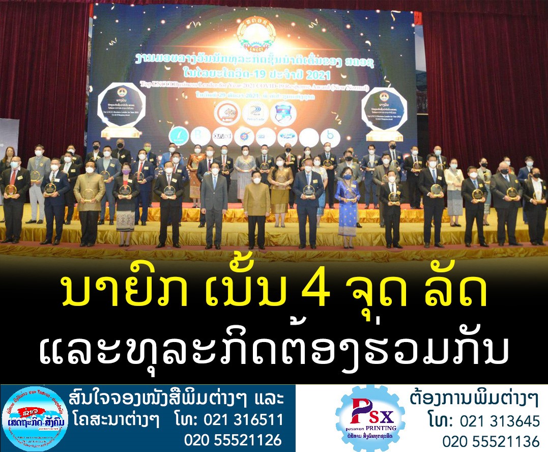 ໂອກາດເຂົ້າຮ່ວມງານມອບລາງ ວັນທຸລະກິດອາຊຽກດີເດັ່ນແຫ່ງ ສປປ ລາວ ປະຈຳປີ 2021 ແລະງານມອບ ລາງວັນນັກທຸລະກິດຊັ້ນນຳດີເດັ່ນສະ ພາການຄ້າ ແລະອຸດສາຫະກຳແຫ່ງຊາດລາວ