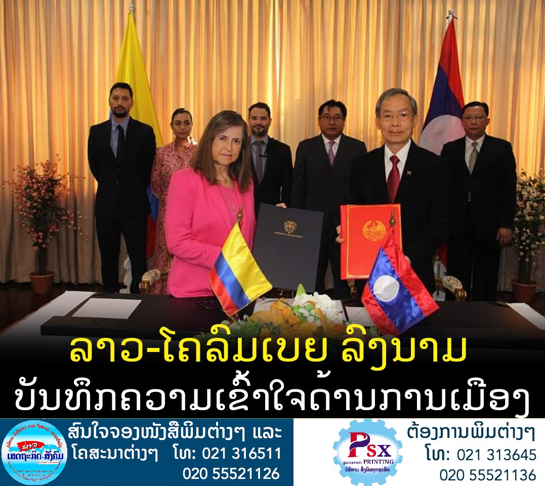 ວັນທີ 24 ທັນວາ 2021, ທີ່ສະ ຖານເອກອັກຄະລັດຖະທູດແຫ່ງ ສປປ ລາວ ປະຈຳຣາຊະອານາຈັກໄທ ໄດ້ຈັດ ພິທີລົງນາມບົດບັນທຶກຄວາມເຂົ້າໃຈວ່າ ດ້ວຍການປຶກສາຫາລືທາງການເມືອງ ລະຫວ່າງກະຊວງການຕ່າງປະເທດແຫ່ງ ສາທາລະນະລັດ ປະຊາທິປະໄຕ ປະຊາ ຊົນລາວ ແລະກະຊວງການຕ່າງປະເທດ ແຫ່ງສາທາລະນະລັດໂຄລົມເບຍ.