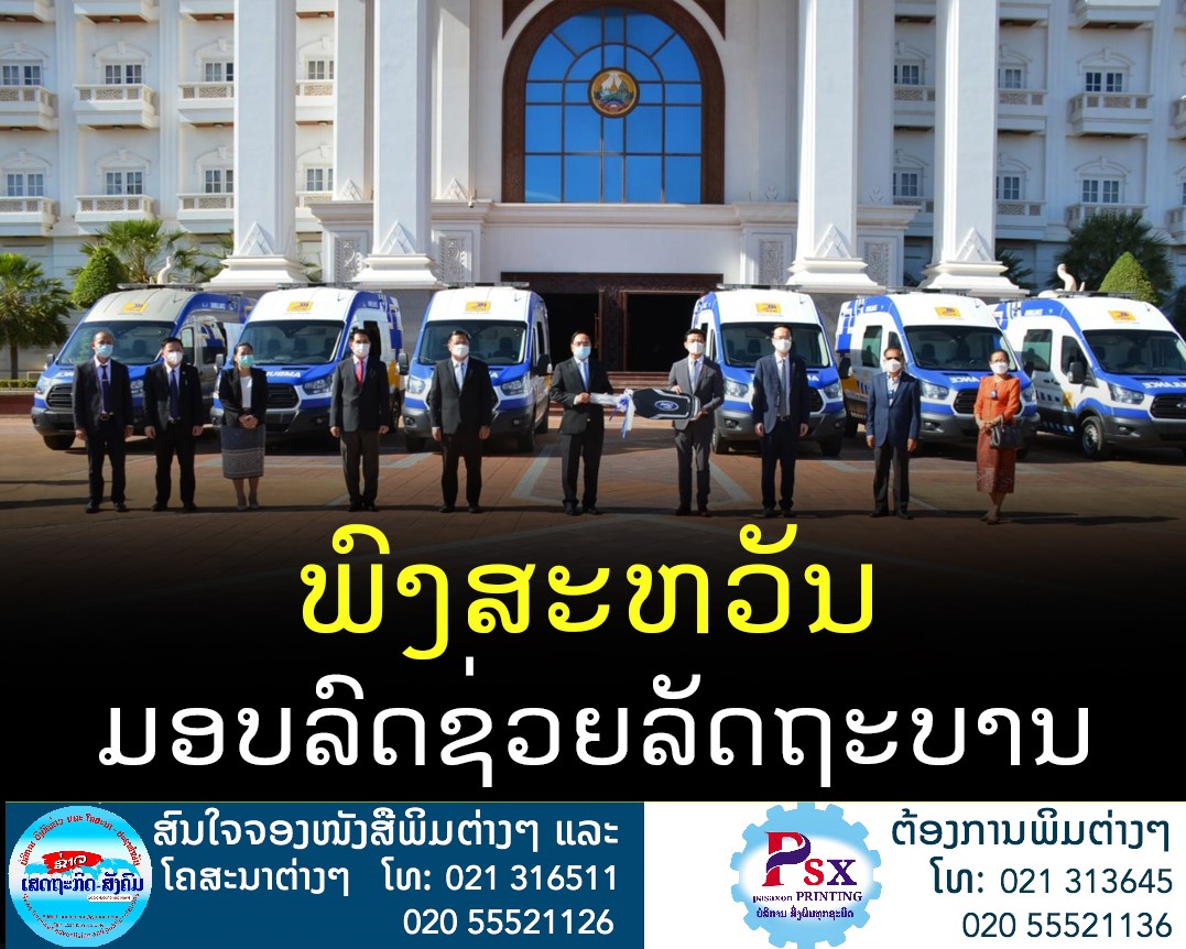 ວັນທີ 27 ທັນວາ 2021 ທີ່ຫ້ອງ ວ່າການສໍານັກງານນາຍົກລັດຖະມົນຕີ ໄດ້ມີພິທີມອບ-ຮັບລົດຊ່ວຍເຫຼືອເປັນ ລົດນໍາສົ່ງຄົນເຈັບ (Ambulance) ຈໍານວນ 6 ຄັນ ລວມມູນຄ່າ 2,94 ໂດ ລາສະຫະລັດ