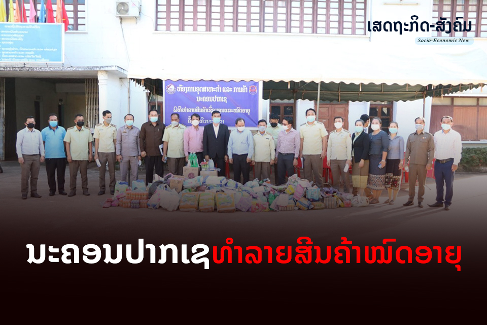 ຫ້ອງການອຸດສາຫະກໍາ ແລະການຄ້າ ນະຄອນປາກເຊ ແຂວງຈໍາປາສັກ ສືບຕໍ່ປະຕິບັດໜ້າທີ່ຢ່າງເຂັ້ມງວດໃນການກວດກາສິນຄ້າທີ່ມີຄວາມສ່ຽງຕໍ່ຜູ້ບໍລິໂພກເມື່ອຫລ້າສຸດໄດ້ຈັດພິທີທໍາລາຍສິນຄ້າໝົດອາຍຸທີ່ຢຶດມາໄດ້ຖິ້ມ ລວມມູນຄ້າ 7 ລ້ານກວ່າກີບ.