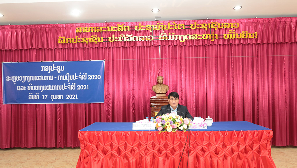 ກອງປະຊຸມສະຫຼຸບວຽກງານແຜນການ-ການເງິນປະຈຳປີ 2020 ແລະທິດທາງແຜນການປີ 2021 ໄດ້ຈັດຂຶ້ນໃນເມື່ອອາທິດຜ່ານມາໂດຍການເປັນປະທານຂອງທ່ານບົວຄົງ ນາມມະວົງ ເຈົ້າແຂວງບໍ່ແກ້ວ, ທ່ານ ເຄື່ອນເພັດ ວົງຈັນ ຮອງເຈົ້າແຂວງບໍ່ແກ້ວຜູ້ຊີ້ນຳຂົງເຂດເສດຖະກິດ,