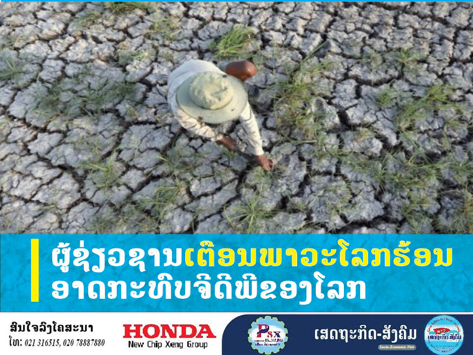 ຜູ້ຊ່ຽວຊານເຕືອນພາວະໂລກຮ້ອນອາດກະທົບຈີດີພີໝົດ ໂລກຮຽກຮ້ອງຊີກໂລກເໜືອເລ່ັງແກ້ບັນຫາທ່ານ ເຈີໂຣມ ເຮເກລີ ຜູ້ນຳທີມນັກເສດຖະສາດຂອງບໍລິສັດສວິສີປະກາດເຕືອນວ່າ ເສດຖະກິດໂລກອາດປະສົບບັນຫາລໍຕົວລົງຢ່າງໜັກ ໂດຍສະເພາະຂອງກຸ່ມປະເທດທຸກຍາກຫາກຍັງບໍ່ມີການຮ່ວມມື