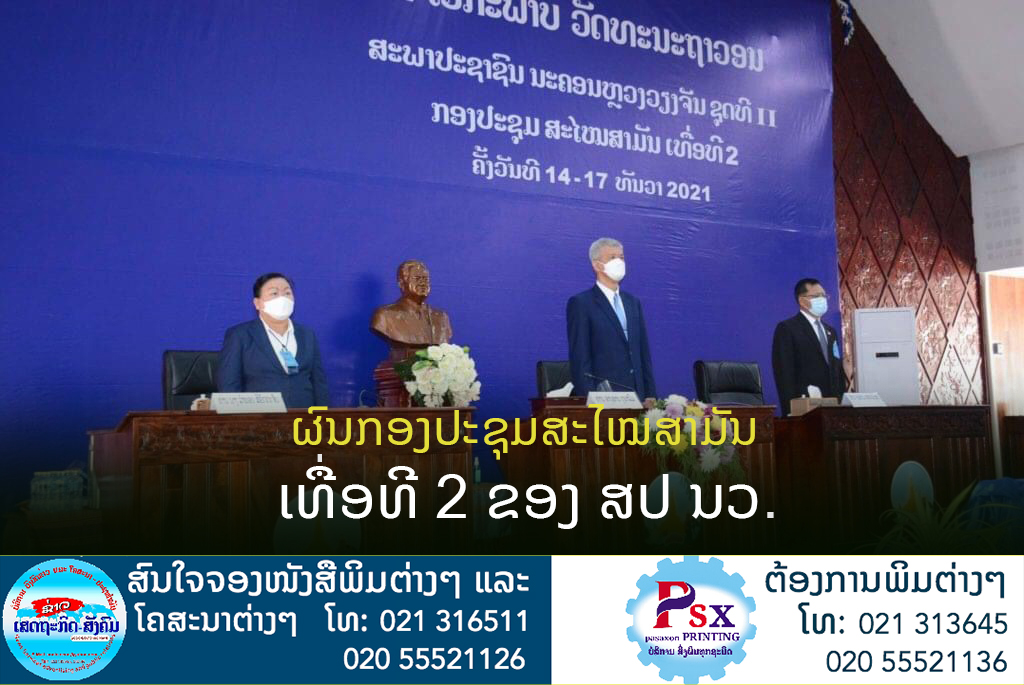 ກອງປະຊຸມສະໄໝສາມັນ ເທື່ອທີ 2 ຂອງສະພາປະຊາຊົນ ນະຄອນຫຼວງວຽງຈັນ (ສປ ນວ) ຊຸດທີ II ອັດລົງດ້ວຍຜົນສຳເລັດ ວັນທີ 17 ທັນວາ 2021 ຢູ່ຫ້ອງວ່າ ການປົກຄອງນວ