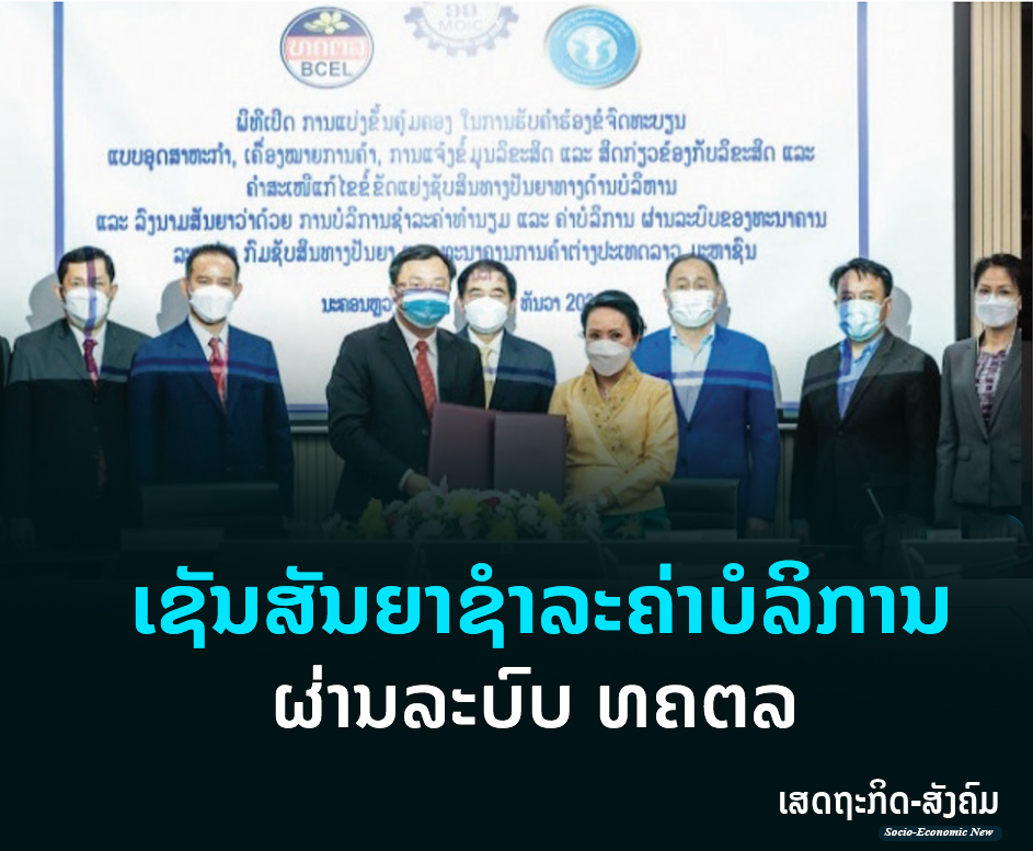 ກົມຊັບສິນທາງປັນຍາ, ກະຊວງອຸດສາຫະກໍາ ແລະ ການຄ້າ (ອຄ) ໄດ້ເຊັນສັນຍາວ່າດ້ວຍການບໍລິການຊຳລະຄ່າບໍລິການຜ່ານລະບົບລະຫວ່າງກົມຊັບສິນທາງປັນຍາ ແລະທະນາຄານການຄ້າຕ່າງປະເທດລາວມະຫາຊົນ (ທຄຕລ)