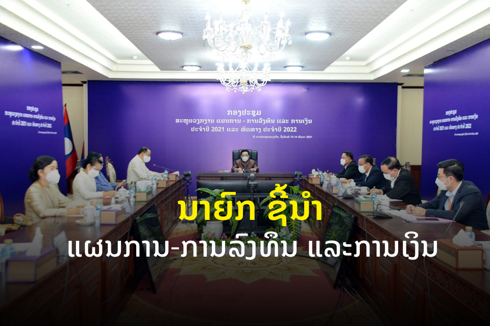 ກອງປະຊຸມສະຫຼຸບວຽກງານແຜນການ-ການລົງທຶນ ແລະການເງິນ ປະຈໍາປີ 2021 ແລະທິດທາງປະຈຳປີ 2022 ໄດ້ຈັດຂຶ້ນໃນວັນທີ 14 ທັນວາ 2021 ໂດຍໄດ້ຮັບກຽດເຂົ້າຮ່ວມເປັນປະທານ ແລະໂອ້ລົມຂອງທ່ານ ພັນຄຳ ວິພາວັນ ນາຍົກລັດຖະມົນຕີແຫ່ງ ສປປ ລາວ,