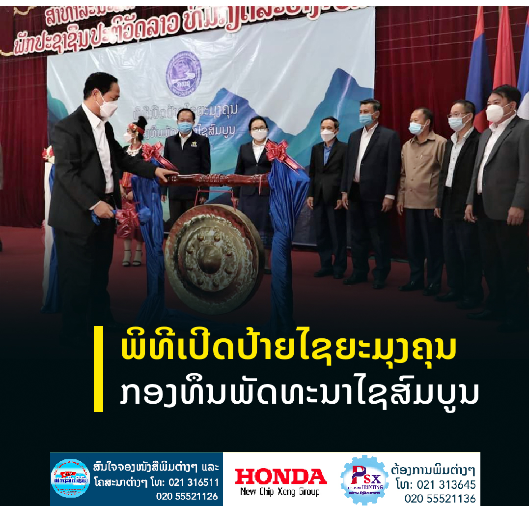 ພິທີເປີດປ້າຍໄຊຍະມຸງຄຸນ ກອງທຶນພັດທະນາໄຊສົມບູນໄດ້ຈັດຂຶ້ນໃນຕອນບ່າຍຂອງວັນທີ14 ທັນວາ 2021 ນີ້ຢູ່ທີ່ສະໂມສອນເມືອງອະນຸວົງ.