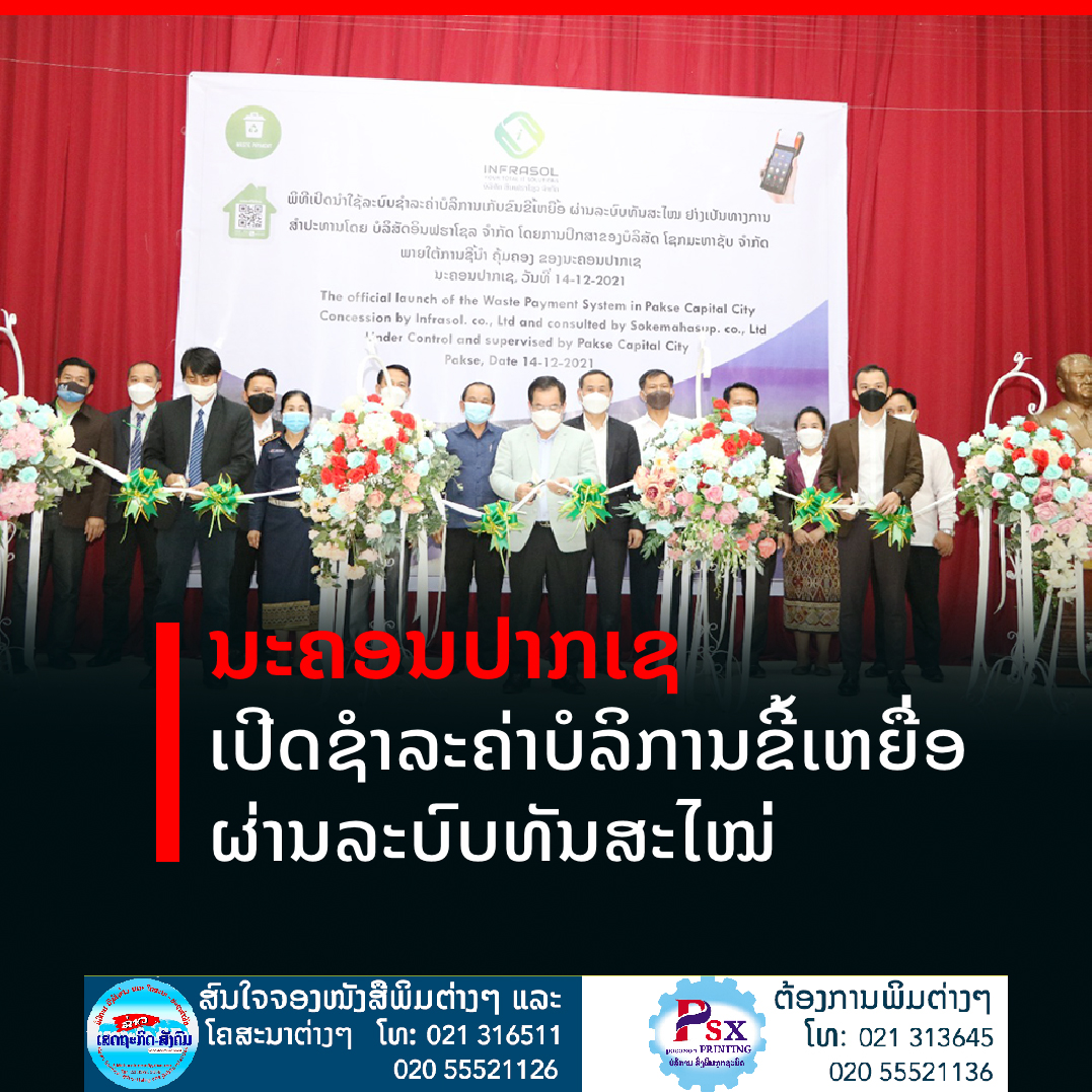 ເພື່ອຮັບປະກັນການຈັດເກັບລາຍຮັບເຂົ້າງົບມານລັດໃຫ້ມີຄວາມສະດວກວ່ອງໄວໂປ່ງໃສ ແລະກວດສອບໄດ້ຫຼ້າສຸດ ນະຄອນປາກເຊ ແຂວງຈໍາປາສັກໄດ້ເປີດໃຫ້ບໍລິການຊໍາລະຄ່າເກັບຂີ້ເຫຍື່ອຜ່ານລະບົບທັນສະໄໝ່ຂຶ້ນກັບບໍລິສັດທີ່ການບໍລິຫານຈັດການ ແລະມີຜົນສໍາເລັດດ້ານນີ້ມາຢ່າງຫຼວງຫຼາຍ.