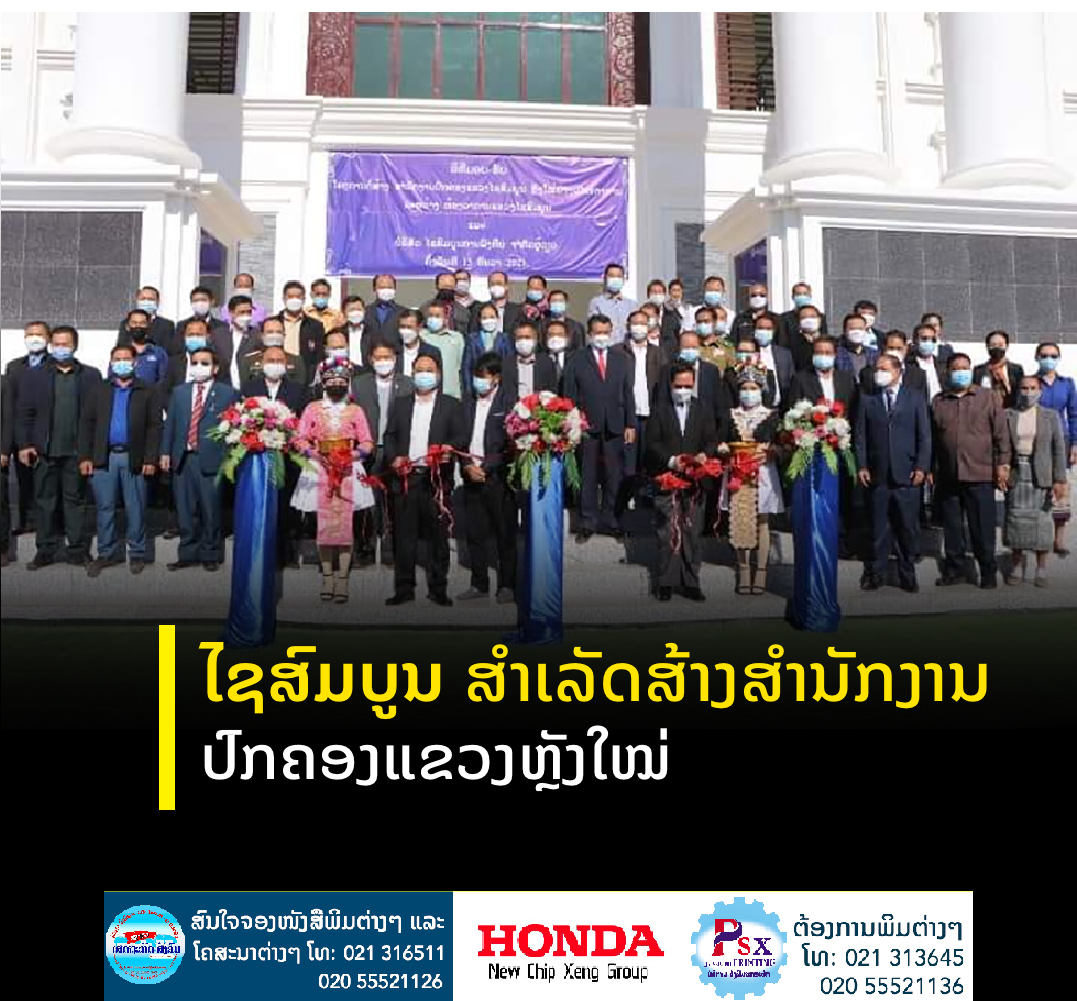 ແຂວງໄຊສົມບູນສໍາເລັດໂຄງການກໍ່ສ້າງສໍານັກງານປົກຄອງຫຼັງໃໝ່ ແລະໄດ້ຈັດພິທີມອບ-ຮັບລະຫວ່າງຫ້ອງວ່າການແຂວງກັບບໍລິສັດໄຊສົມບູນ ການລົງທຶນສາກົນຈໍາກັດຜູ້ດຽວຂຶ້ນໃນຕອນເຊົ້າຂອງ 13 ທັນວານີ້ ຢູ່ທີ່ສໍານັກ ງານຫ້ອງວ່າການແຂວງຫຼັງໃໝ່,