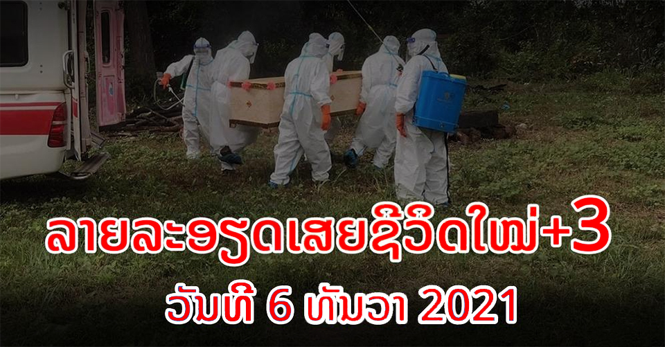 ຕາມການລາຍງານຂອງຄະນະສະເພາະກິດວັນທີ 6 ທັນວາ 2021 ໃຫ້ຮູ້ວ່າ ສປປ ລາວ ມີຜູ້ເສຍຊີວິດໃໝ່ +3 ເຊິ່ງມີຂໍ້ມູນດັ່ງນີ້: